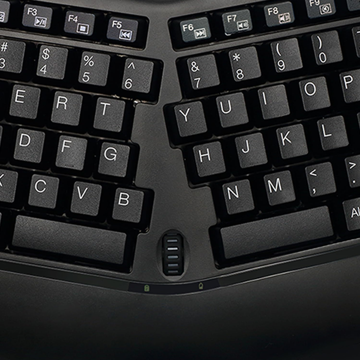 Q: Is the keyboard ergonomic, and how does it help with wrist pain?A: Yes, the keyboard features a split key design and an integrated palm rest which encourages a natural hand position, minimizing the risk of wrist pain and discomfort associated with prolonged use.