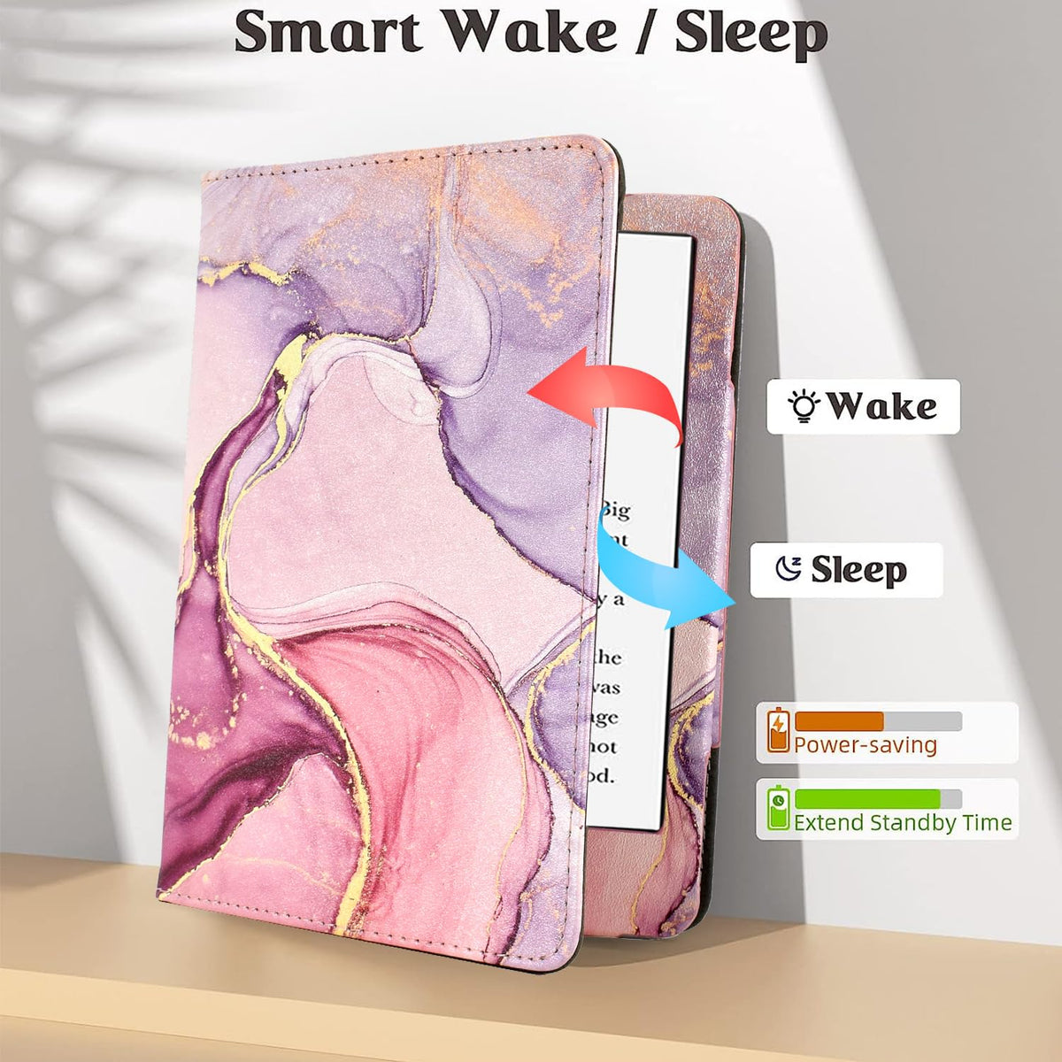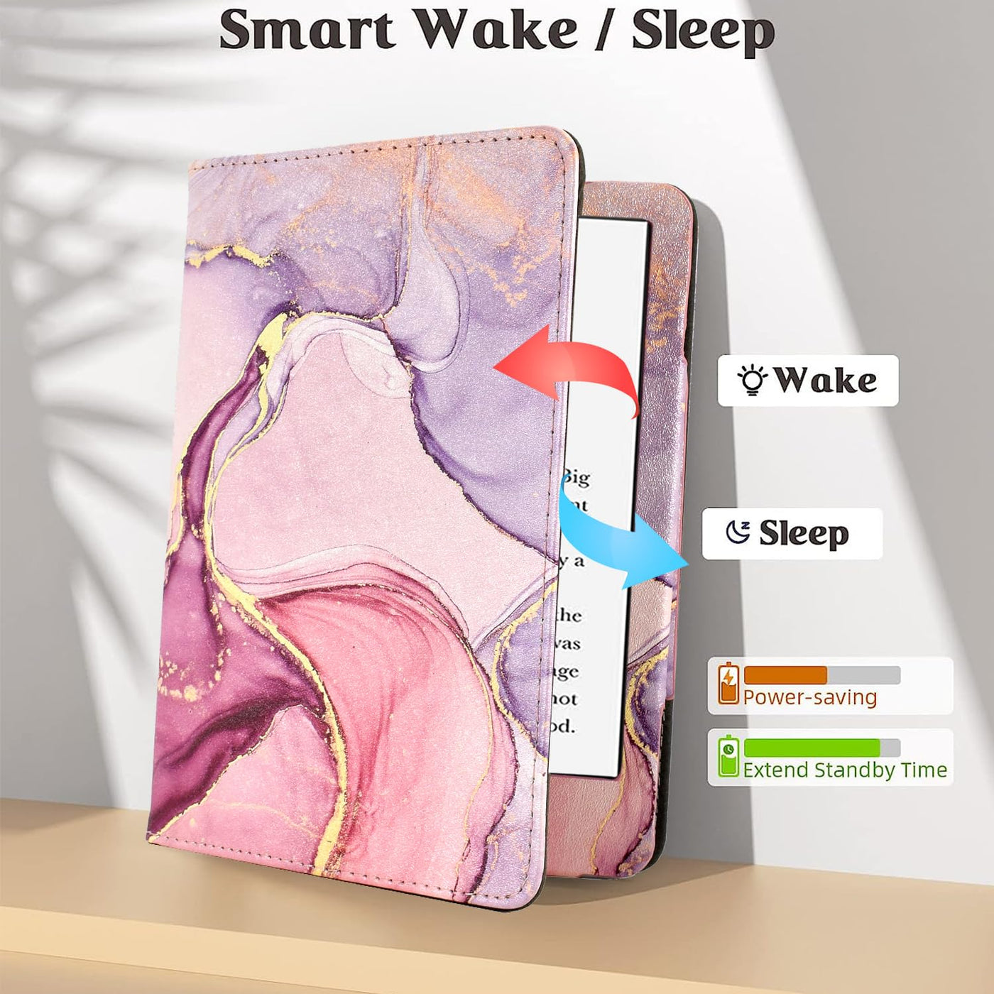 Q: Does the KEROM case have a sleep/wake feature?A: Yes, the KEROM Kindle Paperwhite Case features an auto sleep/wake function. It automatically wakes your device when the cover is opened and puts it to sleep when the cover is closed, ensuring convenience and battery conservation.