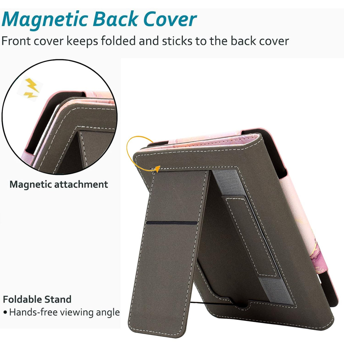 Q: How does the stand feature work on the KEROM Kindle Paperwhite Case?A: The KEROM case includes a foldable stand that allows you to prop your Kindle on a desk, table, or lap. This hands-free design is perfect for reading comfortably while multitasking or relaxing.