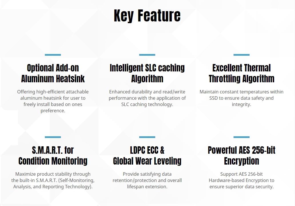 ?Phenomenal Speed For Both Work And Fun? Time To Take Your System Performance To New Heights! Leveraging Pcie Gen 4 Technology, The Cras C910 Achieves Phenomenal Read/Write Speeds Of Up To 5000/4800Mb/S, Delivering Seamless Experience For Gamers, Creators, And Professionals. ?Modern Yet Powerful Aluminum Heatsink? The Attachable Aluminum Heatsink Of Cras C910 Provides An Efficient Way To Dissipate Unnecessary Heat From The Product. With Up To 10% Temperature Reduction Compared To Non-Heatsink Ssds, It Can Avert Overheating And Secure Long-Term Reliability To Extend Product Lifespan. ?Optional Add-On Heatsink For Diverse Scenarios? We Know That Users Can Face Diverse Usage Scenarios And Have Personal Preferences When It Comes To Building A Rig. The Cras C910 Hence Provides An Optional Adhesive Heatsink To Maximize Your Freedom In Ssd Installation. Its Your Call To Decide What Best Suits You! ?Buttery Smooth Performance For Top-Tier Gaming? With The Cras C910, System Boot Time, Game Load Time, And Overall Response Time Can Be Reduced Dramatically All At Once. For People Wanting To Play The Latest Titles & Enjoy Lag-Free Experience, It Is Definitely A Must-Have To Play With Confidence! ?Cutting-Edge 3D Nand Inside? 3D Nand Technology Offers Bigger Storage Capacity, Better Durability,And Lower Power Consumption Compared To Legacy 2D Nand. Combining All The Advantages Together, The Cras C910 Delivers Reliable Quality With Prominent Tbw(Terabytes Written) That You Get To Use At Ease. ?Trouble-Free Installation Across Systems? Not Just Compliant With Minimal M.2 2280 Form Factor, The Add-On Heatsink Of Cras C910 Is Also Specially Designed To Be Extremely Light & Slim! The 1-Mm-Thick Heatsink Allows The Whole Compact Ssd To Fit Into Diversified Desktops, Mini Pcs, And Laptops, With Only A Tiny Space Required!