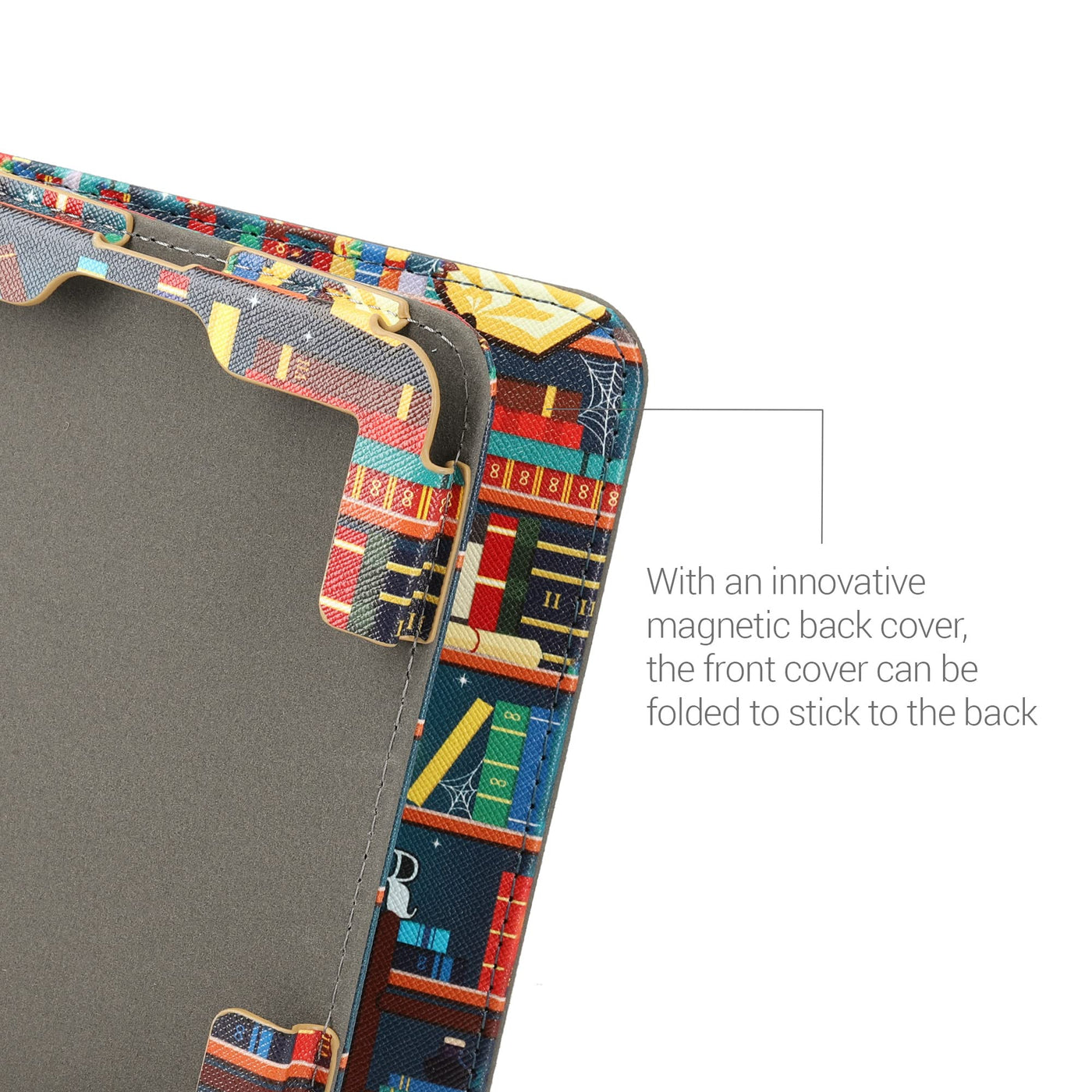 Q: How does the magnetic closure work on this case?A: The case uses strong magnets that snap shut, securely holding your Nook in place and protecting it from accidental openings.
