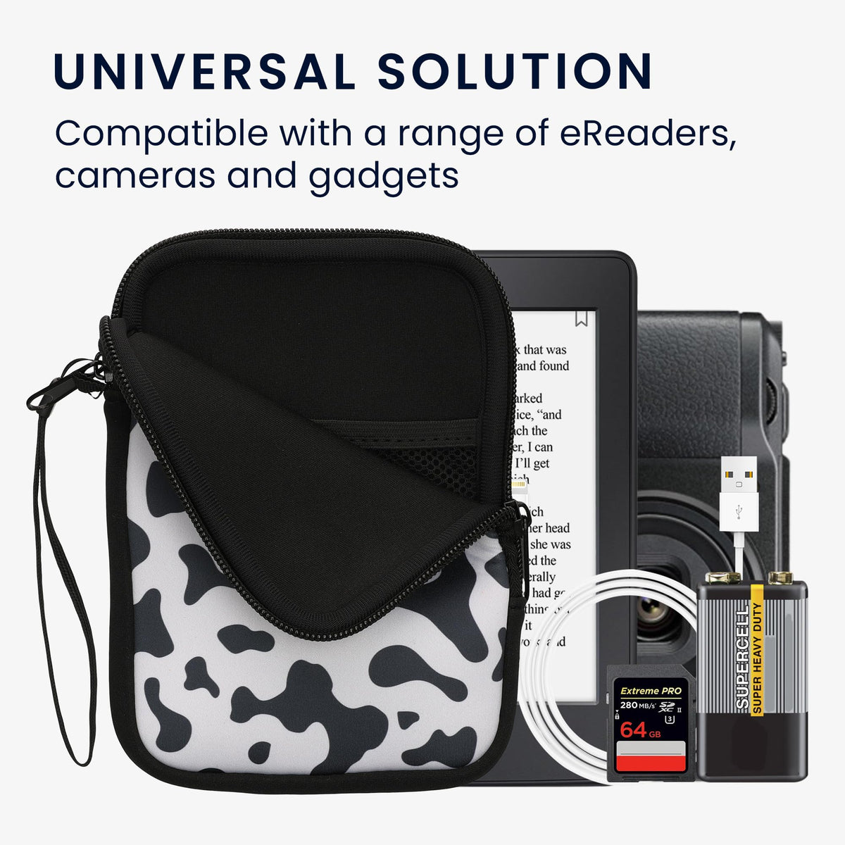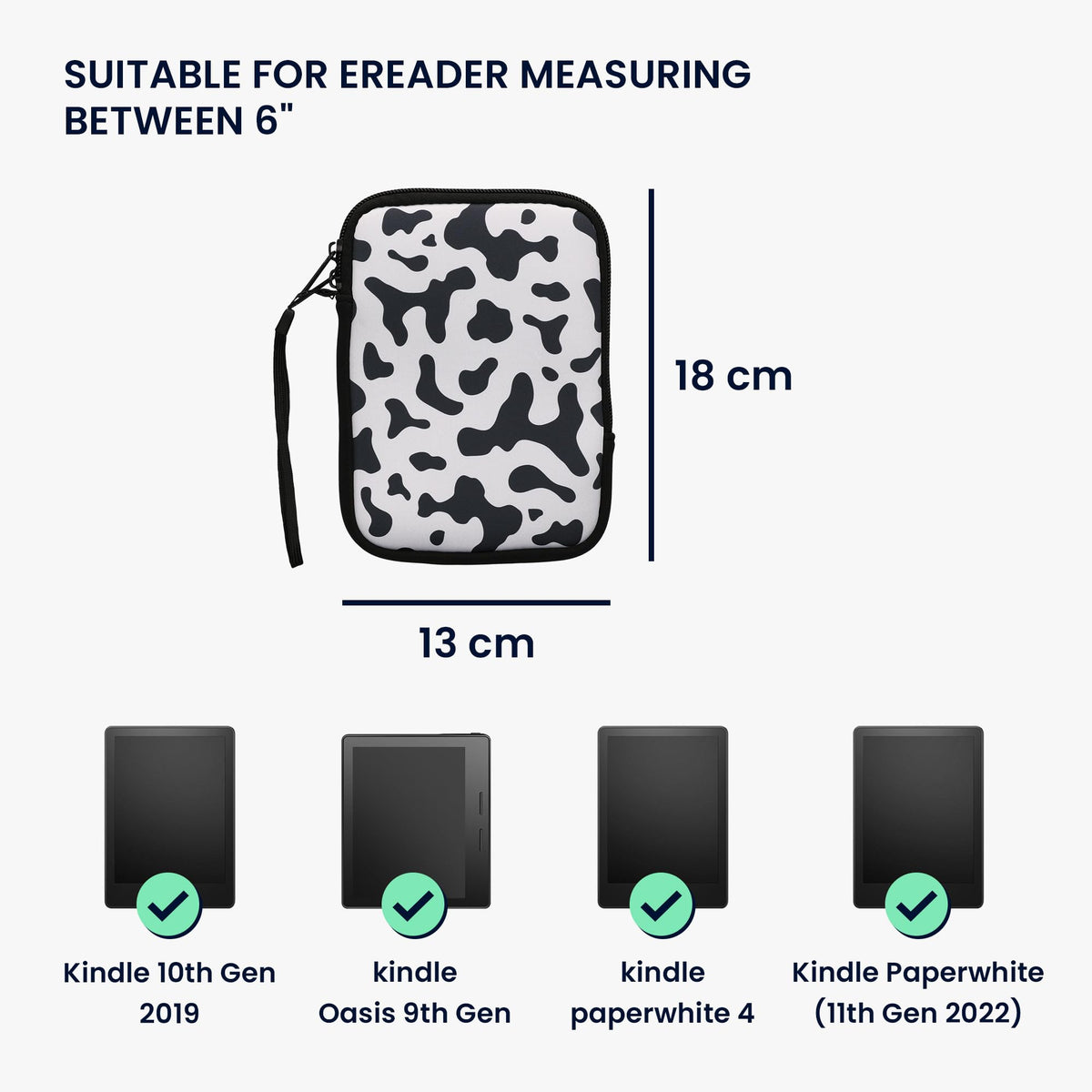 Kwmobile Stands For Modern, Practical And Affordable Gadgets For Smartphones, Tablets And Other Electronic Devices. We Offer The Perfect Accessories For A Variety Of Manufacturers' Brands And Models.Detailslightweight: Zippered Ereader Case Made Of A Lightweight, Water-Resistant Mix Of Neoprene And Elastane Featuring Cow Print Design; Measures 6.7 X 4.7 X 0.8 Inches (17 X 12 X 2 Cm) Insidefull Protection: Shockproof Pouch Protects Your Ebook From Shocks, Falls, Drops, Bumps And Scratcheszipper Closure: Zip Closure Keeps Your E-Book Safe Inside At All Timeslight & Soft: Universal E-Reader Pouch Slides In And Out Of Pockets Easily And Feels Smooth To The Touchscope Of Delivery1X Neoprene E-Reader Pouch