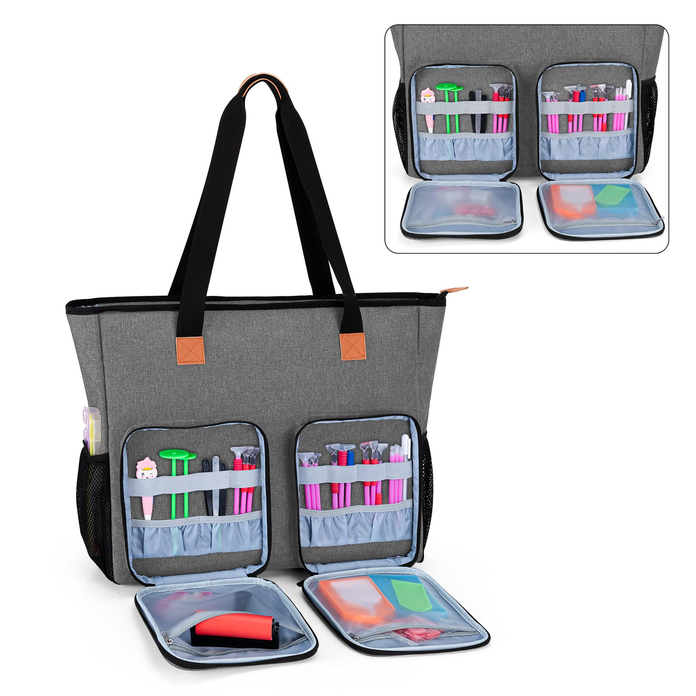 Q: What storage options does the bag offer for accessories?A: The LUXJA Carrying Case includes an inner padded sleeve, a large zipper pocket, and multiple compartments, as well as 2 front pockets with elastic bands and translucent pouches for organizing sticky pens, tweezers, and other accessories.