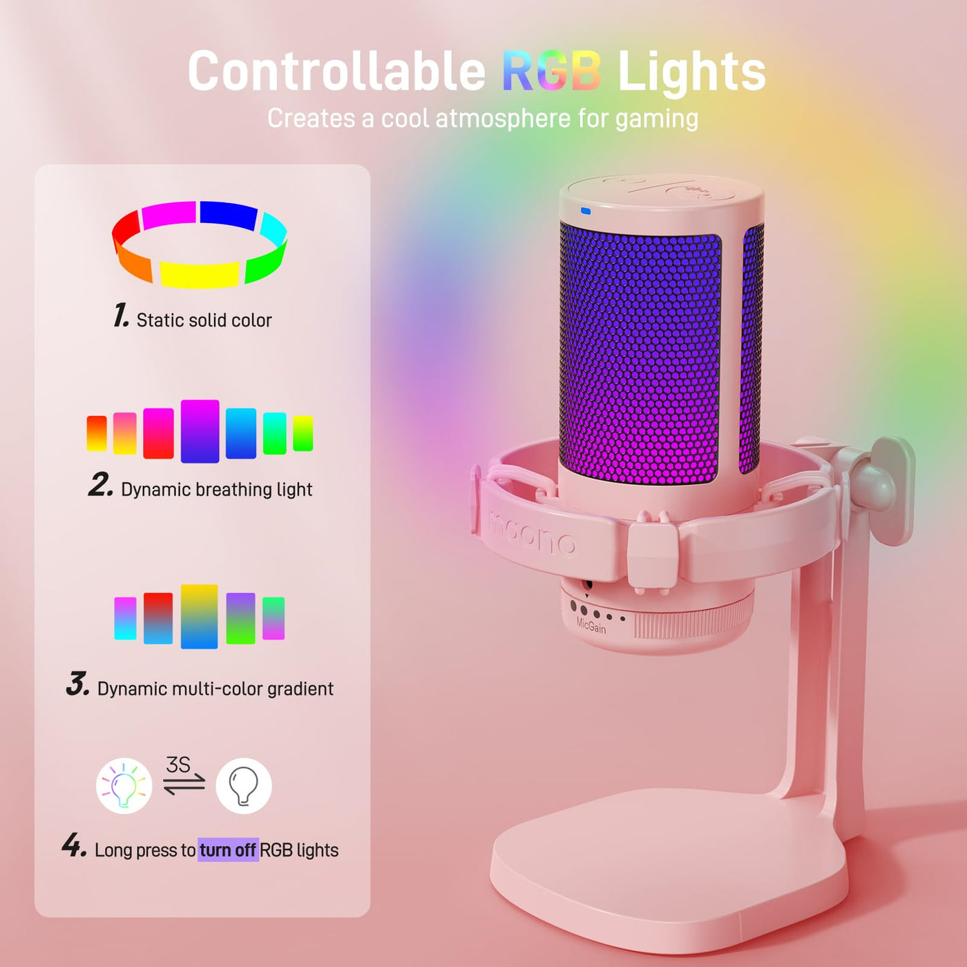 Maono Usb Internet Microphone Specially Designed For Game Enthusiasts. On The Basis Of Establishing High Sampling Rate Audio Quality And Adding An Enc Noise Reduction Function, It Can Also Create A Game Voice-Live Broadcast Experience For Users, Even In The Virtual World, And Team Combat Will Never Lag; Simple And Elegant Appearance, Unique Modern Style, Different Adjustable Rgb Lighting Modes At The Top Of The Fuselage, Bringing Cool Visual Enjoyment Is Your Indispensable Setup Device; All-In-One Suit, Usb-C Interface Is Plug And Play, Discord, Obs, Xsplit, Twitch, Youtube, Facebook, And Other Internet Scenes Are Compatible, Especially The Gospel Of Ps4 And Ps5 Players, Which Will Definitely Bring8Leapfrog Experience.