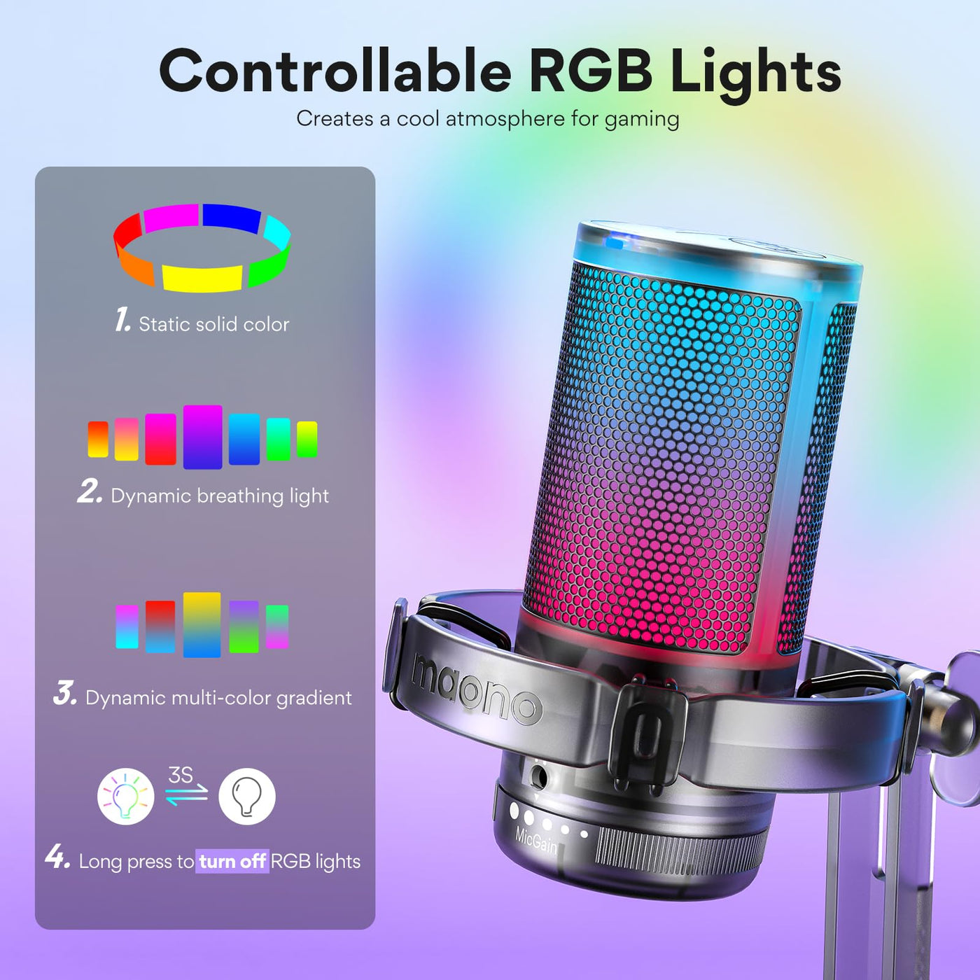 Maono Gaming Usb Microphone For Pc With Noise Cancellation, Computer Rgb Condenser Mic For Streaming Discord Twitch Youtube Podc