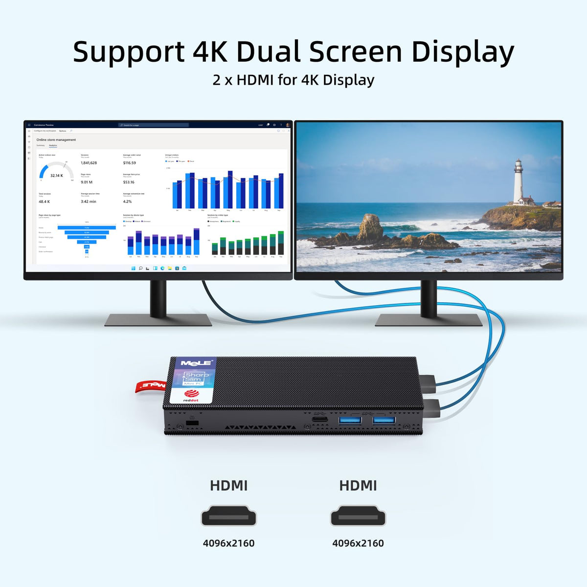 Mele Fanless Mini Pc Stick N100 Windows 11 Pro Pcg02 Pro 8Gb Ram 128Gb Micro Computer 2X Hdmi 4K Wifi 5 Bt5.1 Gigabit Ethernet, Support Linux Pd Protocol For Business Iot Office Home Theater Digital Signage Nas Astrophotography