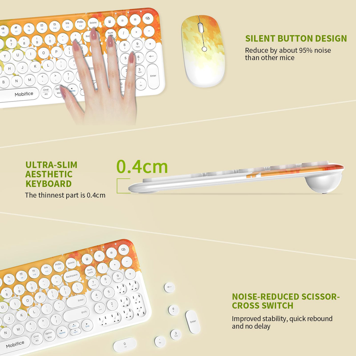 Mobifice New Arrives 2.4Ghz Usb Wireless Keyboard And Mouse Ultra-Thin Cordless Compact-Sized Silent Retro Computer Keyboard Mouse Combo For Pc Computer/Laptop/Windows/Mac/Tablets