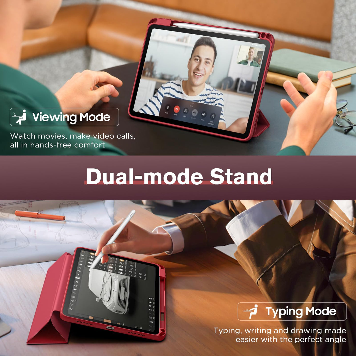 MoKo for iPad Air 11 Inch Case (M2) 2024, iPad Air 6th Generation Case/iPad Air 5th/4th Gen 2022/2020 with Pencil Holder, Smart Trifold Protective iPad Case, Hollow Logo/Auto Wake/Sleep, Red