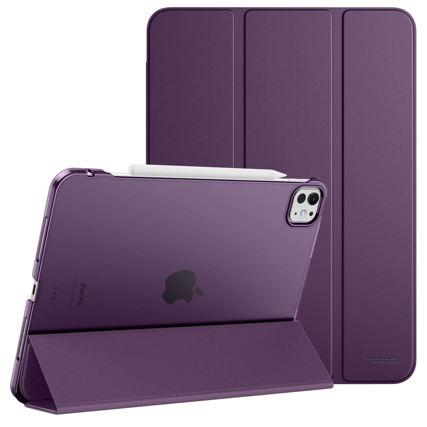 MoKo for iPad Pro 11 Inch Case M4 2024 (5th Gen), Ultra Slim Stand Case with Hard PC Translucent Back Shell Cover for iPad Pro 11'' 2024 Model (A2836/A2837/A3006), Support Apple Pencil Pro,Dark Purple
