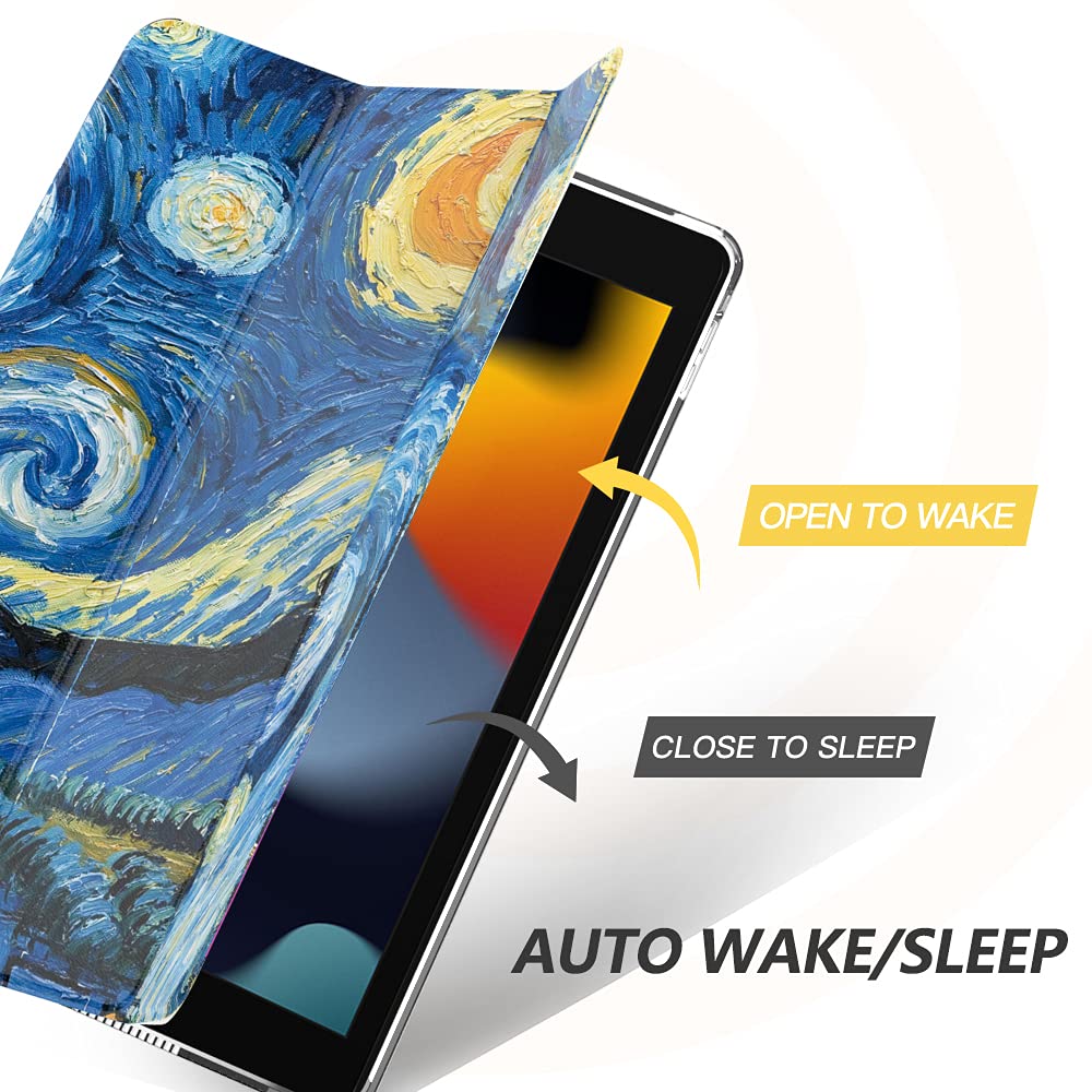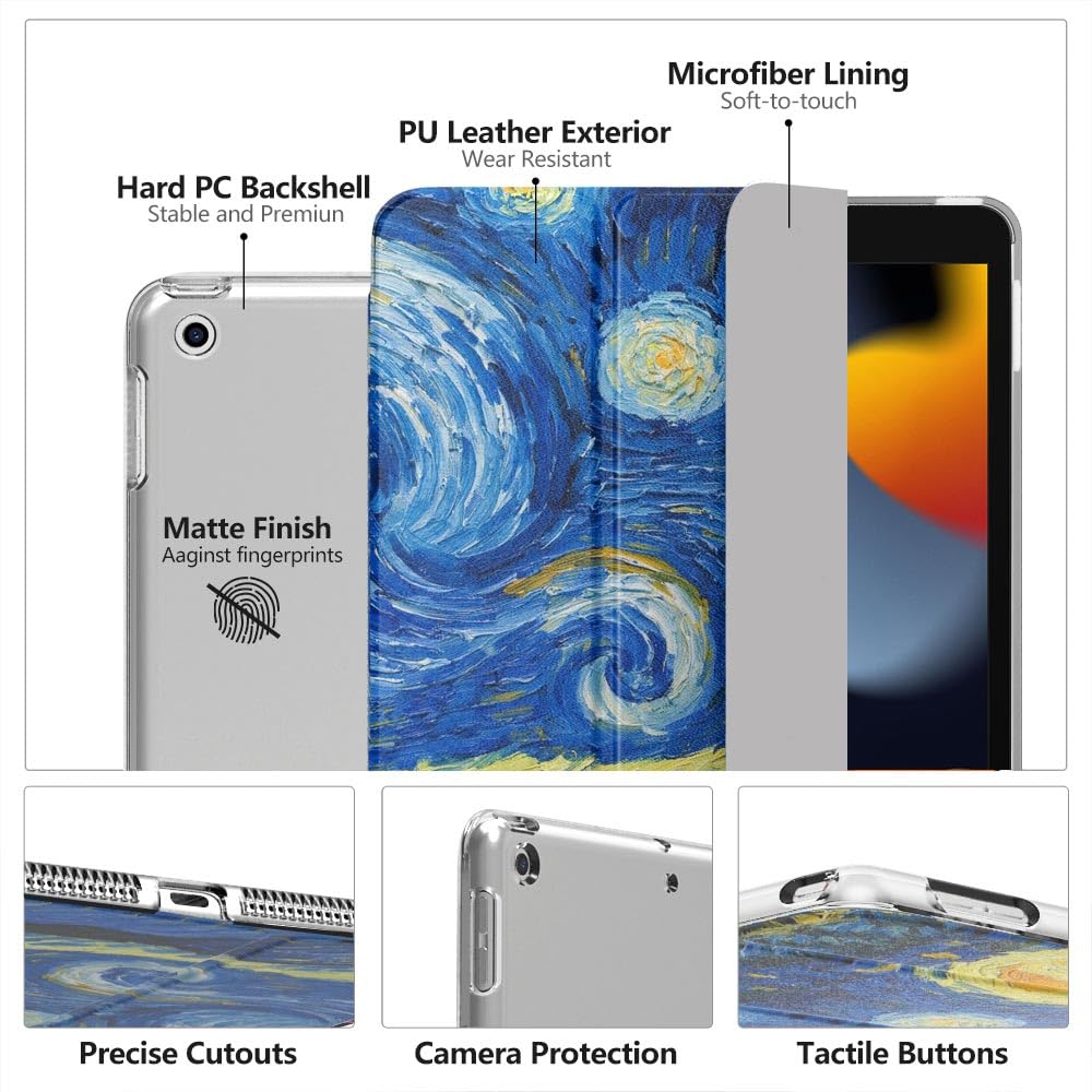Compatibility : Designed Exclusively For Ipad 9Th Generation 2021 / Ipad 8Th Generation 2020 / Ipad 7Th Generation 10.2'' 2019 Tablet (Model: A2602, A2603, A2604, A2605, A2270, A2428, A2429, A2430, A2197, A2198, A2200). Note: Do Not Fit Other Tablet. Access To All Features And Controls | Adjustable Angles : Strong Magnetic Connection To Create A Stable Viewing Stand For Your Tablet. Two Angles Are Provided For Satisfying Your Viewing And Typing Needs. Avoid Any Joint Pain, And Free Your Hands For Other Entertainments | Auto Wake/Sleep : Built-In Magnetic Strip, Automatically Wakes Or Puts Your Tablet To Sleep When The Lid Is Opened And Closed. Protects And Extends Battery Life | Excellent Quality : Made Of Premium Pu Leather Exterior, Soft Microfiber Lining And Coverage With Translucent Pc Back Shell, This Case Provides Total Full Body Protection Against Fingerprints, Shocks, Scratches And Dust | Simple Fashion Design : Slim And Lightweight Hard Back Design Adds Minimal Bulk While Protecting Your Precious Device. The Translucent Frosted Back Cover Allows You To See The Icon Through Your Favorite Color. A Variety Of Colors And Designs Fashions Your Life.