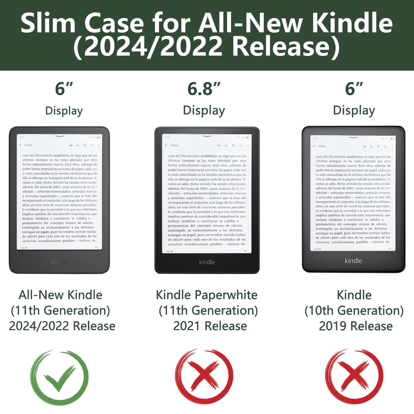 Q: Is the MOROCK Slim Case compatible with other Kindle models?A: No, the MOROCK Slim Case is specifically designed for the Amazon All-New 6" Kindle (11th Generation - 2024/2022 Release, Model No.C2V2L3) and is not compatible with any other Kindle devices.