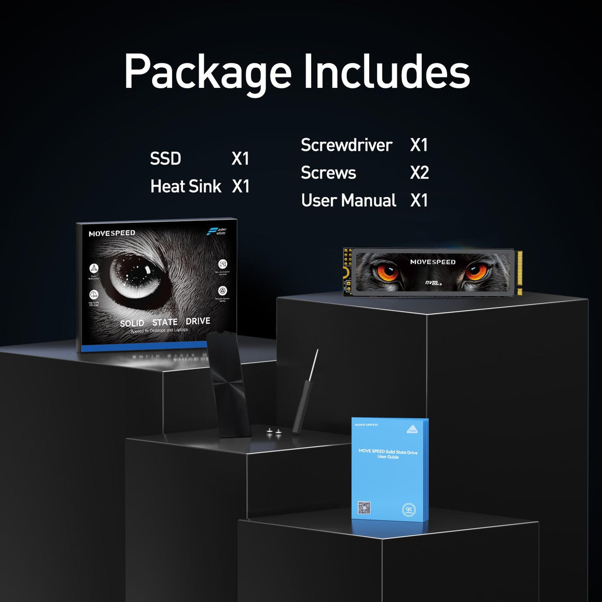 ?2Tb Pcie 4.0 Nvme M.2 Ssd Product Features ? Read Speeds Up To 7,450Mb/S And Write Speeds Up To 6,500Mb/S With 3D Tlc Nand Technology ? Breakthrough Power Efficiency, Use Less Power And Get More Performance ? Wide Compatible With Ps5, Desktop, Laptop Specification Model Name: Movespeed Pcie 4.0 Nvme M.2 Ssd Storage Capacity: 1Tb/2Tb/4Tb Storage Type: Internal Caching Type: 3D Nand Controller: Maxio Map1602 Read Speed: 7450Mb/S Write Speed: 6500Mb/S Interface: M.2@Pcie 4.0 X4 Compatibility: Ps5, Desktop, Notebook Product Dimensions (Wxhxd): 80*22*2.2Mm Product Weight: 8.1G