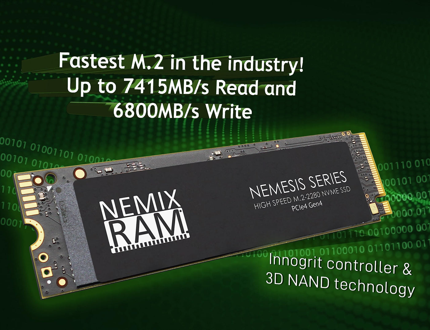 Nemix Ram Nemesis Series 4Tb M.2 2280 Gen4 Nvme Ssd For Playstation 5 & Pc Gaming Machines Fastest Write Speeds Up To 7415Mbps Supports Pcie 4 (Pcie3 Backward Compatible)