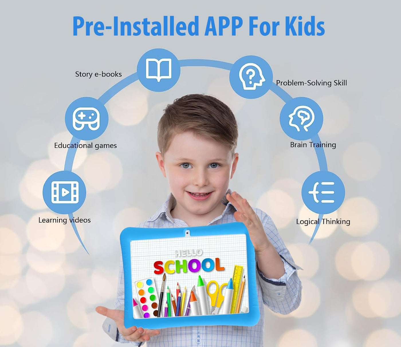 Kids Tablet, 10 Inch Android 12 For Kids, 4Gb Ram 64Gb Rom, 1280X800 Ips Hd Touchscreen, Tablet With Parental Control, Kid Software Pre-Installed, Wifi, Bluetooth,(Blue)...