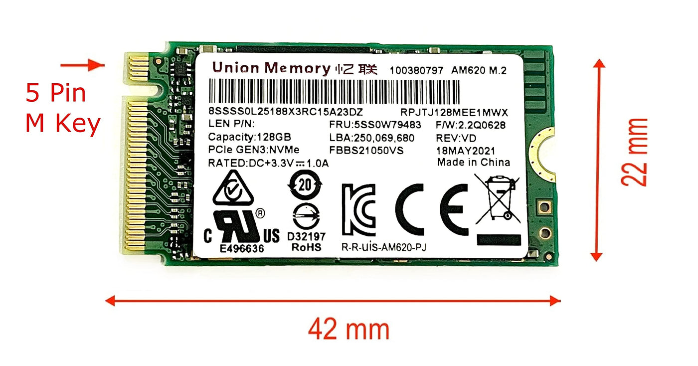 Oem Union Memory 128Gb M2 Pci E Nvme Ssd Internal Solid State Drive 42Mm 2242 Form Factor M Key