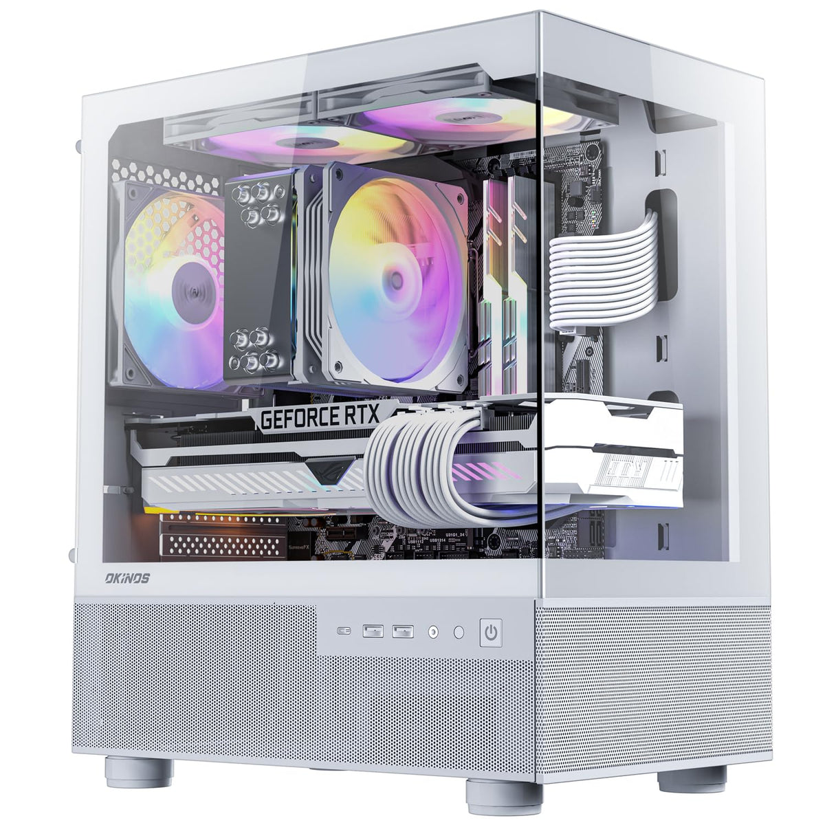 Okinos Aqua 3, Micro Atx Case, Matx Pc Case With 3 X 120Mm Argb Fan Pre-Installed, Panoramic View Tempered Glass Front & Side Panel, With Type C Port, White