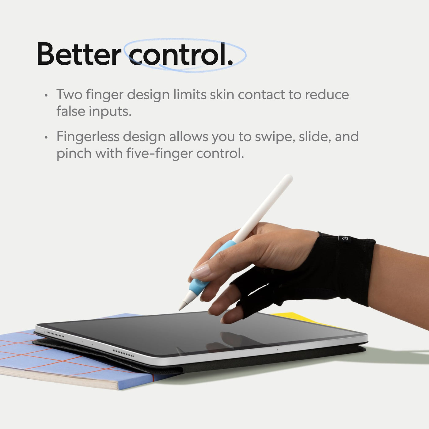 Q: How does the glove enhance control while drawing on my iPad?A: Unlike many other artist gloves, the Paperlike Drawing Glove features exposed fingers, allowing full use of your iPad’s multi-touch functionality. This design minimizes unintended inputs from your palm, providing better control while you draw.