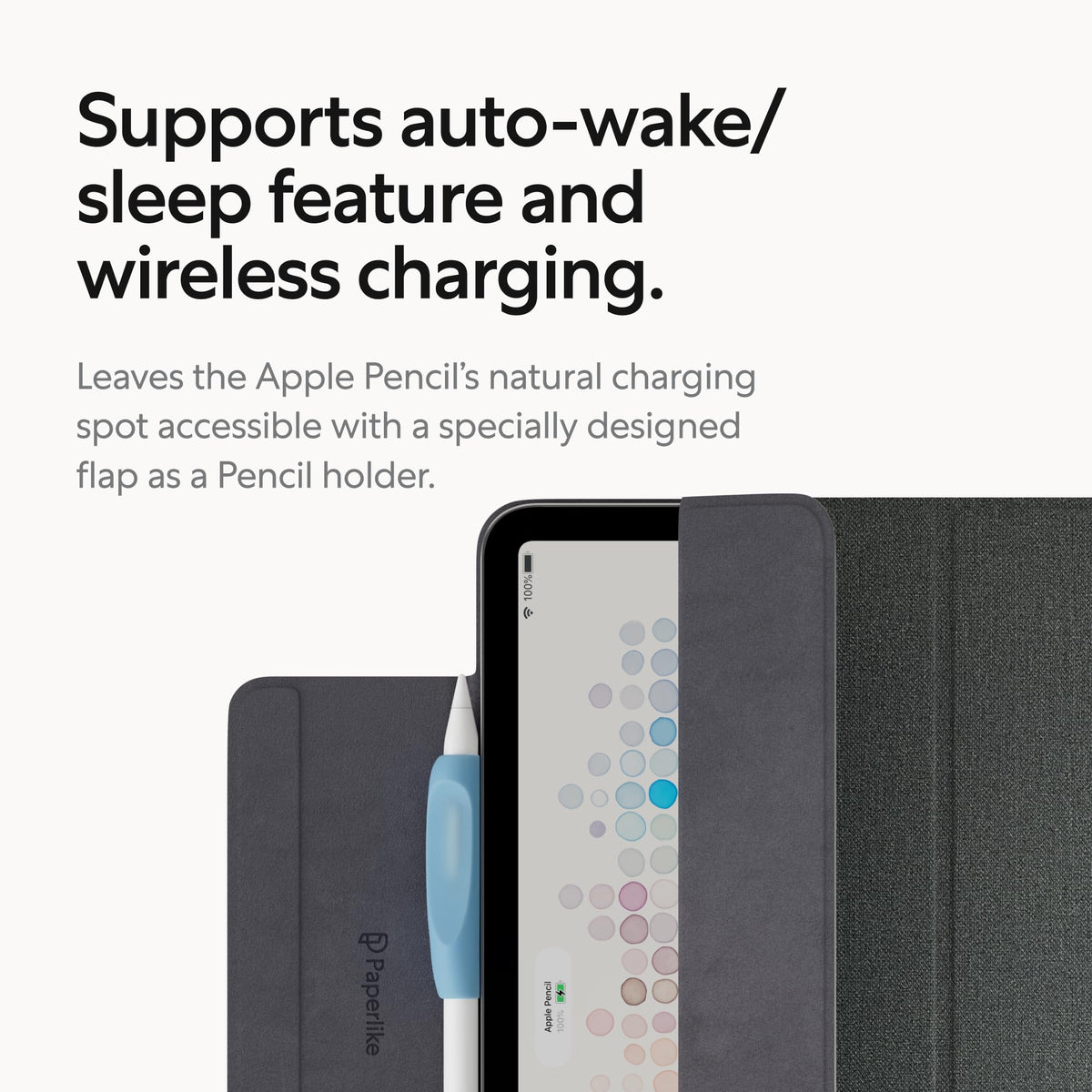 Q: Does the Folio Case support the Apple Pencil charging?A: Yes, the Paperlike Folio Case features a special closing flap that secures the Apple Pencil while charging. It also provides easy access to the Pencil’s wireless charging spot, making it convenient for users.