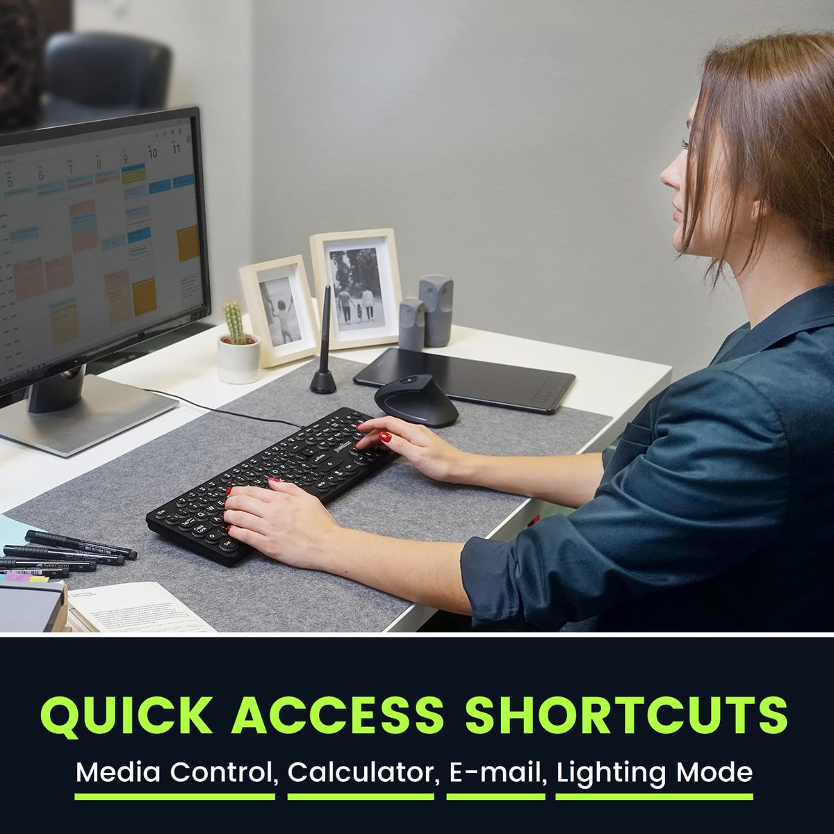 Big Font, Full-Size Layout: Enjoy a spacious 105-key layout with letters that are 4-times larger than standard keyboards, ensuring maximum visibility and ease of use.