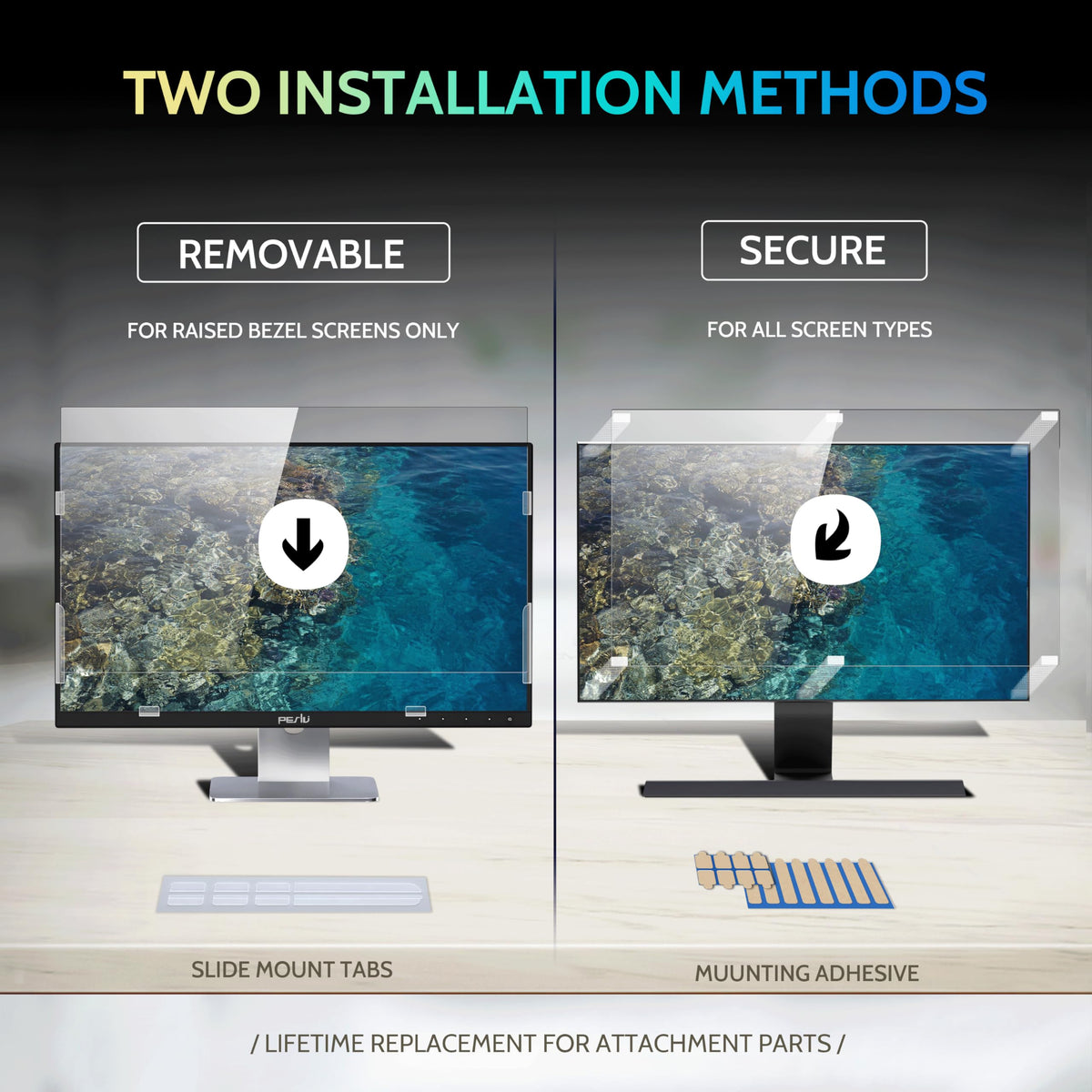 Peslv 2 Pack 20 Inch 16:9 Computer Privacy Screen For Widescreen Monitor, 20Inch Removable Anti Blue Light Glare Eye Protection