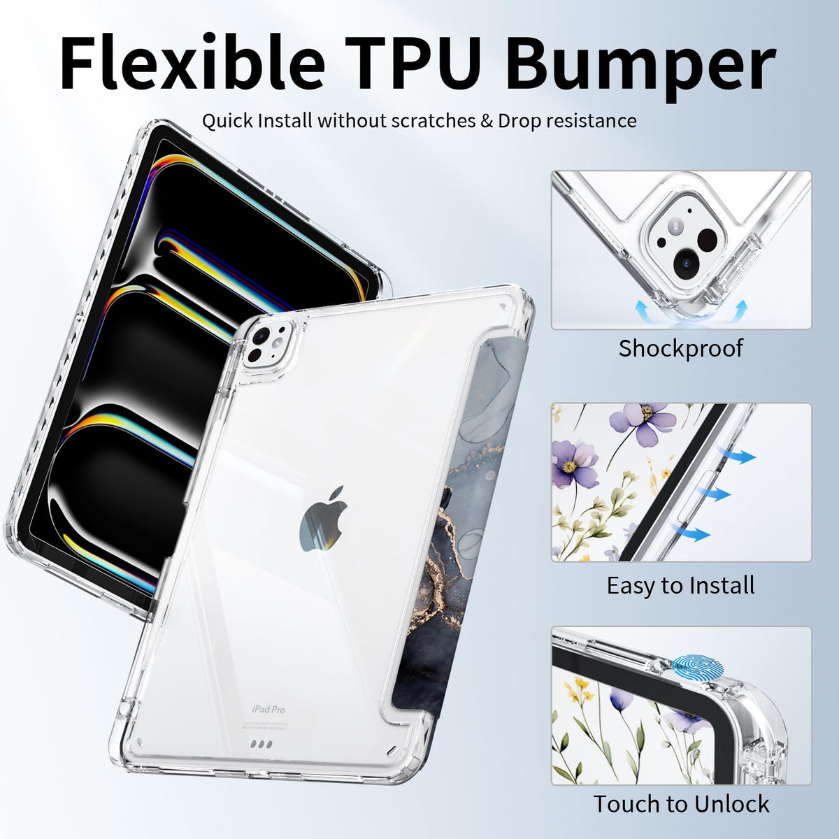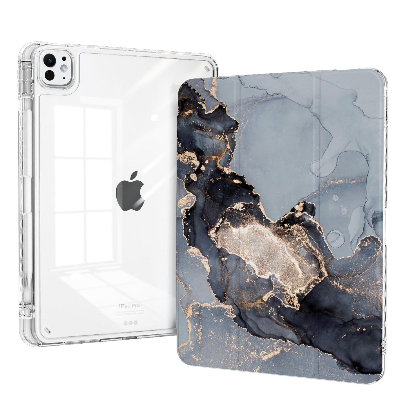 Piznernico Hybrid Slim Case For Ipad Pro 13 Inch M4 2024 Models With Pencil Holder, Trifold Stand, Shockproof Transparent Clear
