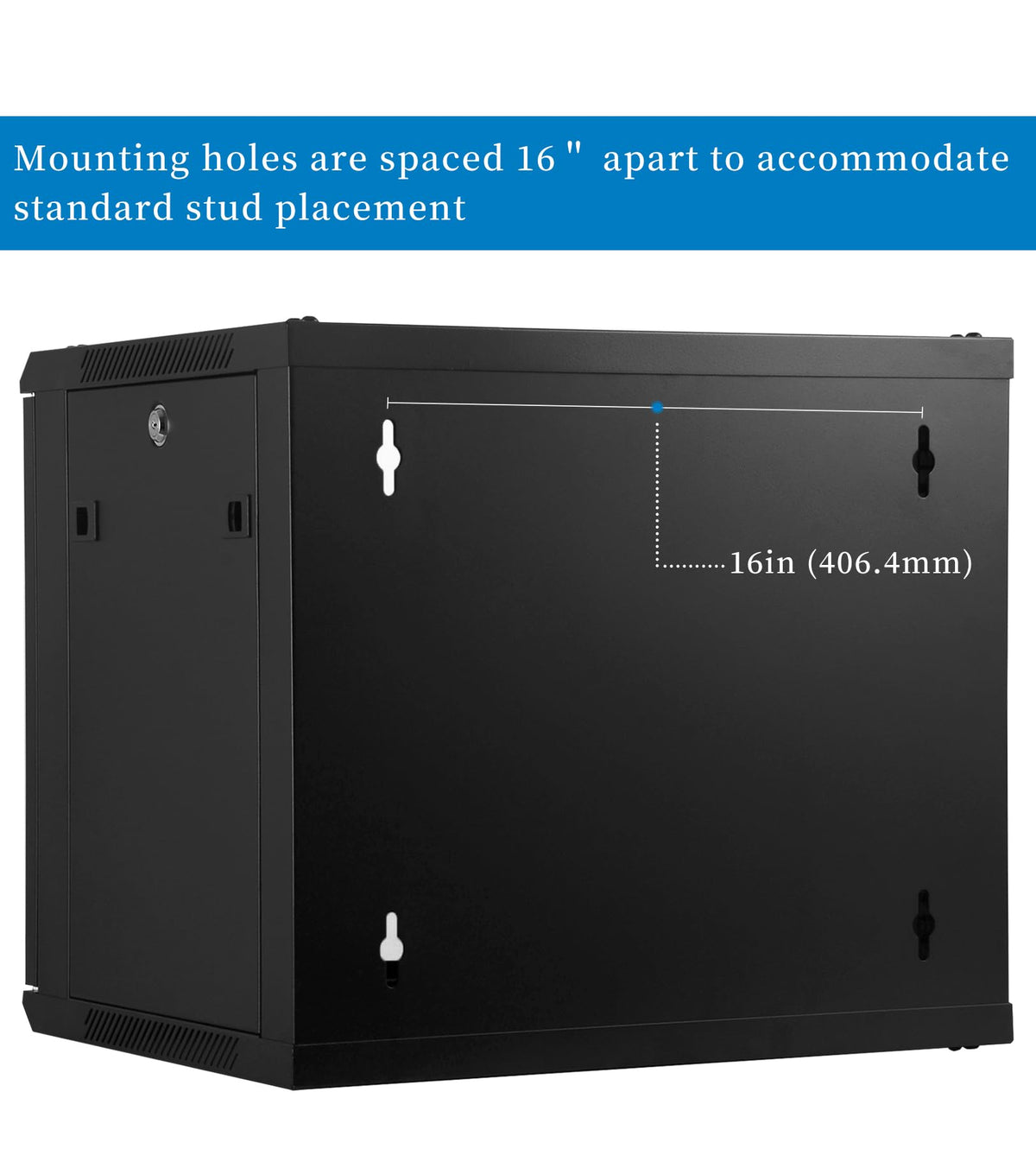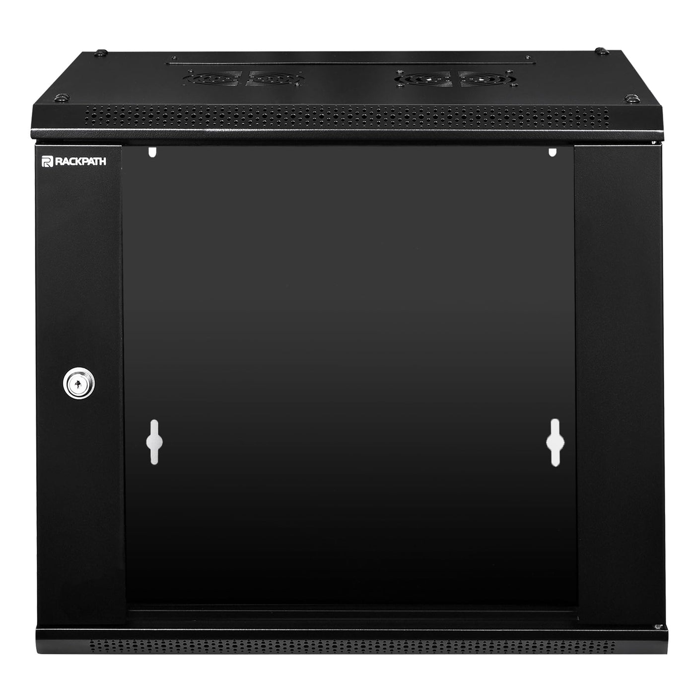 Rackpath 9U Performance Wall Mount Server Cabinet Network Rack Enclosure, Quiet Cooling Fan, Locking Glass Door, Black