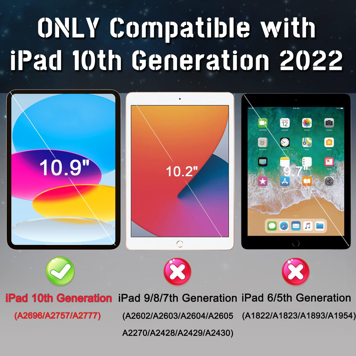 Q: Is this case compatible with all iPad 10th generation models?A: The Rantice iPad 10th Generation Case is specifically designed for the 10.9 inch iPad 10th Generation (2022 Release) with model numbers A2696, A2757, and A2777. Please check the model number on the back of your iPad to ensure compatibility.