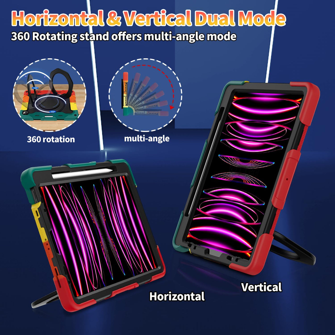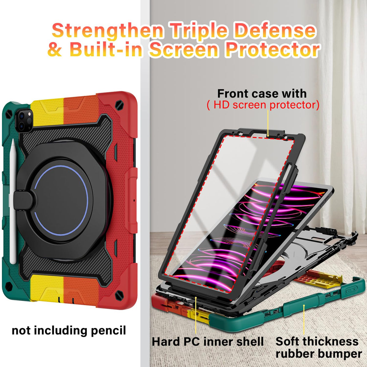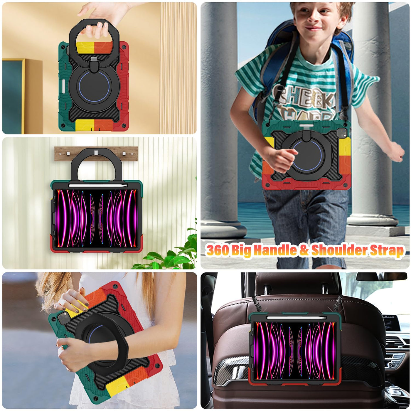 Fits ?Ipad Pro 11 Inch Case 4Th Generation(2022 Release) ?3Rd Generation (2021)? 2Rd Generation (2020)? 1St Generation (2018) And ?Ipad Air 10.9 Inch Ipad Air 5Th Generation (2022) ?Ipad Air 4Th Generation( 2020) | [Advanced Silicone Material Enhanced Drop Protection] Upgrade Shock-Absorbing Ipad Pro 11 & Air 5Th/4Th Gen Silicone Shell With Air-Guard Corners And Shock-Absorbing Silicone To Protect Ipad 11 & 10.9 Inch Case From Drop, Shocks, Impacts And Scratches During Hit Against Floor And Daily Use Situation, Ensure Offer Drop Protection Truly, Also Particle Full Around On Silicone Increase Comfortable And Anti-Slip Function When In Use | [3-Layer Full Body Protection With Built In Hd Screen Protector] Built In Hd Screen Protector, Enhance 3-Layer Construction Design,Unique Super Thick Shock-Absorbing Ipad Pro 11 & Air 5Th/4Th Generation Silicone Shell Exceed 2X Military Grade Drop Test Standard [Mil-Std 810G-516.6], Be Sure To Offer Strongest Protection, Against Any Sudden Drop, Shock And Knocks, Safe For Kids. Additional Built-In Upgrade Sponge Technology Adds Extra Heat-Dissipation | [Multiple Angles Of Kickstand/Magic Kickstand & Handle] Upgrade 360 Rotating And Foldable Kickstand Provides Angle Between 20-75 Degrees Of Horizontal (Landscape) Or Vertical (Portrait) Orientation For Your 11 Ipad Pro & Ipad Air 5/4 Tablet. Also Offers Hand Hold And Hung On Wall Using By Handle Function, Allow You Use Or Carry Much Easier, Meet Your Every Needs, Match Up All Kinds Of Group | [Adjustable / Detachable Shoulder Strap & Pencil Holder] Equip With 59 Inches Adjustable And Detachable Shoulder Strap Assure No Matter Where You Go, Carry It Up With Maximum, Totally Relieve Your Hands, Also Can Hung On The Back Seat In Car, Create A Mini Movie Theater For Your Kids. Designed With A Pencil Holder On Back Easily To Carry It With Your Pencil (12 Months Warranty,No Including Pencil)