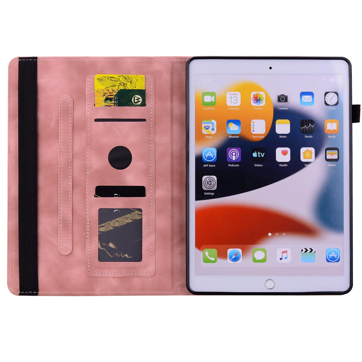Q: How does this case protect my iPad during travel?A: The case includes an elastic strap with a snug closure to secure your iPad during transport, along with shockproof features to safeguard against accidental drops.