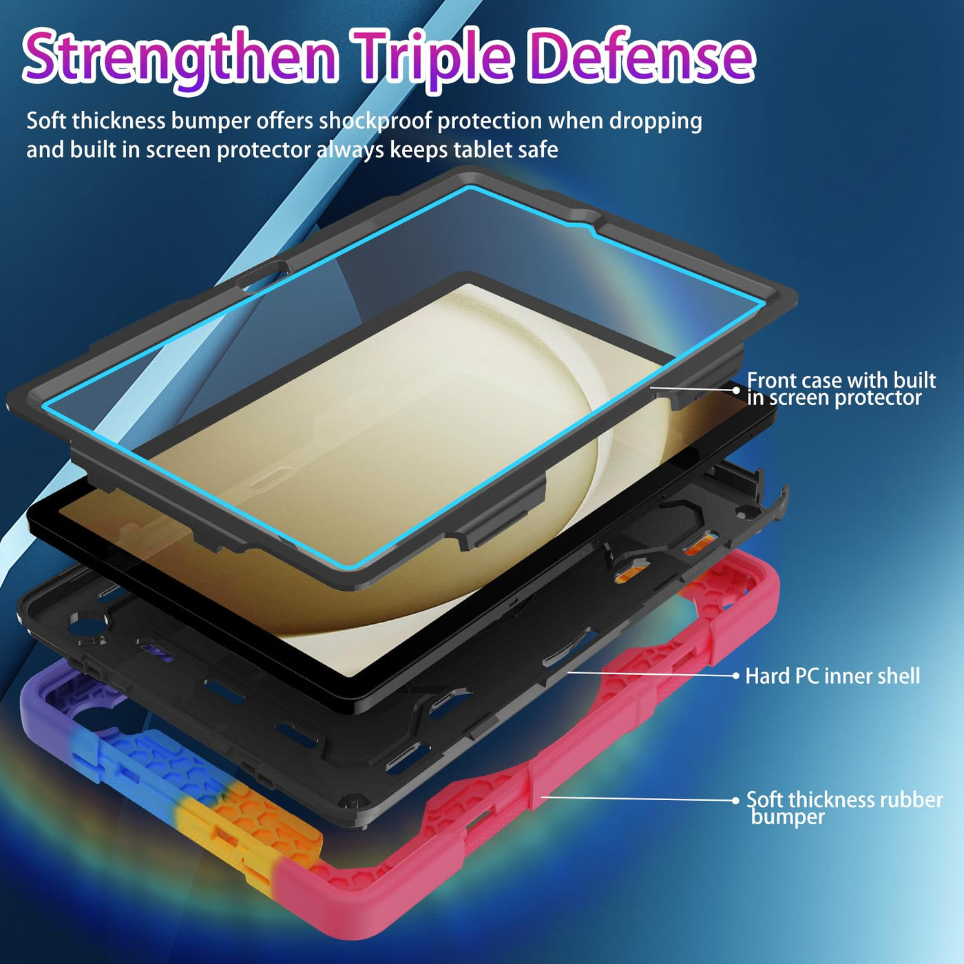 Rosrome Case For Galaxy Tab A9 Plus 5G/ A9+ (11 Inch) With Hd Screen Protector & Shoulder Strap|15Ft Drop Protection|360 Stand H