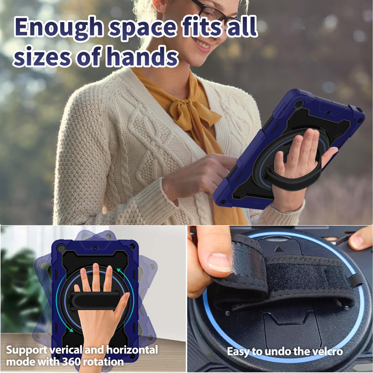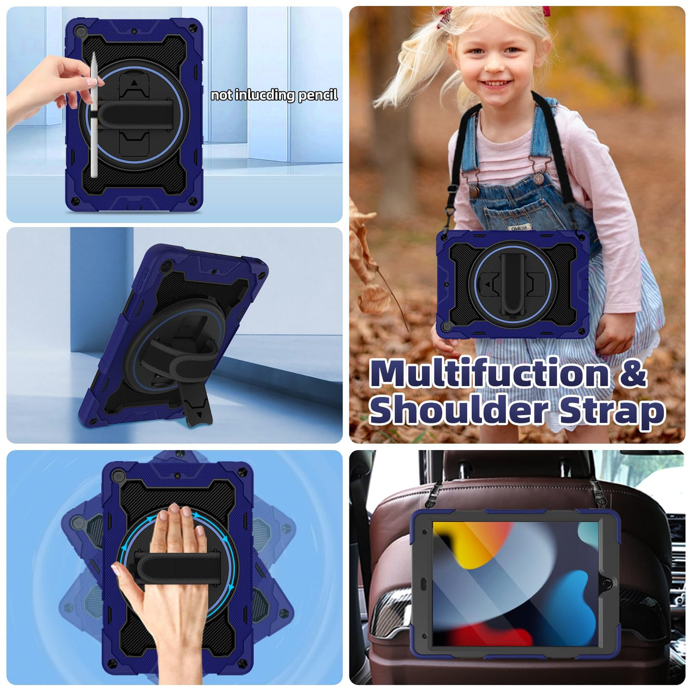 Fits 2021 Ipad 10.2 Inch 9Th Generation Model A2602 A2603 A2604 A2605, 2020 Ipad 10.2 Inch 8Th Generation Model A2197 A2198 A2200, 2019 Release Ipad 10.2 Inch 7Th Generation A2270 A2428 A2429 A2430 | [ Built In Hd Screen Protector] Case For Ipad 10.2 Inch Ipad 9Th/8Th/7Th Generation Made Of Silicone And Rubber Are Very Flexible And Offer Great Grip, Shock Resistance. Built In Screen Protector And Keep Screen Of Your Ipad From Cracking And Scratching, Eco-Friendly Durable Case For Kids | [3-Layer Full Body Protection] 1.2 Inch Soft Airbag Rubber Part + Front Screen Of The Case + Hard Pc Back Cover = Ensuring Your Ipad Safe Even If Dropping It From 5Ft Place, Kiddo Drop Protection. Easy To Turn On/Off Volume And Power Buttons | [Two Horizontal And Vertical Viewing Angles ] 360 Rotating Stand On The Back Can Be Used In Either Horizontal Or Vertical Direction,One Low Angle One High Angle To Meet Your Needs, Easy To Snap In Place And Back Automatically | Rotating Hand Strap & Shoulder Strap & Pencil Holder] Adjust Rotating Hand Strap For Horizontal Or Vertical Direction Fits All Size Of Hands (Small, Medium, Large, Extra-Large) & 59 Inches Length Of Shoulder Strap & There Is A Stylus Pen Holder On The Back To Store Your Pen (Pencil Is Not Included)