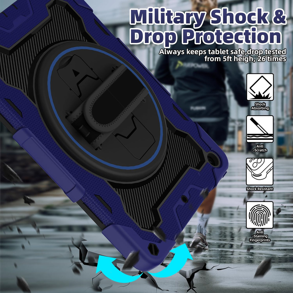 Q: What kind of protection does this case provide for my iPad?A: The case offers 3-layer full body protection, including a soft airbag rubber part, a front screen cover, and a hard PC back cover, ensuring safety against drops from up to 5 feet, making it ideal for kids.