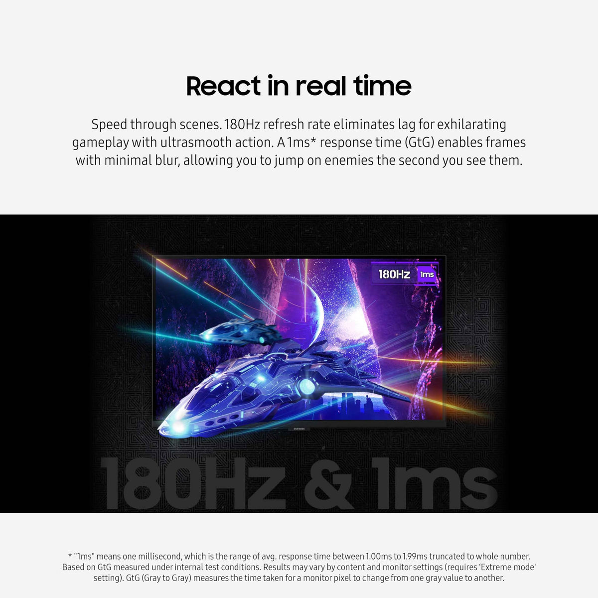Samsung'S Odyssey G50D Gaming Monitor With Qhd Resolution Features Incredibly Detailed, Pin-Sharp Images. The Fast Ips Panel Delivers Clear, Vibrant Colors And A 178 Viewing Angle, While The 180Hz Refresh Rate And 1Ms Response Time (Gtg) Eliminates Lag And Enables Frames With Minimal Blur For Ultra-Smooth Gaming Action. Vesa Displayhdr 400 Offers More Clarity, Providing Dynamic Contrast With Deeper Blacks And Brighter Whites. Amd Freesync Keeps The Monitor And Graphics Card Refresh Rate In Sync For A Seamless Experience. Features An Ergonomic Stand That Makes It Easy To Swivel, Tilt, And Adjust The Height Of The Monitor, Plus Eye Saver Mode, Which Enables More Focused Gaming With Less Eye Strain, For Total Comfort Even When Playing For Extended Periods Of Time.''1Ms'' Means One Millisecond, Which Is The Range Of Avg. Response Time Between 1.00Ms To 1.99Ms Truncated To Whole Number. Based On Gtg Measured Under Internal Test Conditions. Results May Vary By Content And Monitor Settings (Requires Extreme Mode' Setting). Gtg (Gray To Gray) Measures The Time Taken For A Monitor Pixel To Change From One Gray Value To Another.