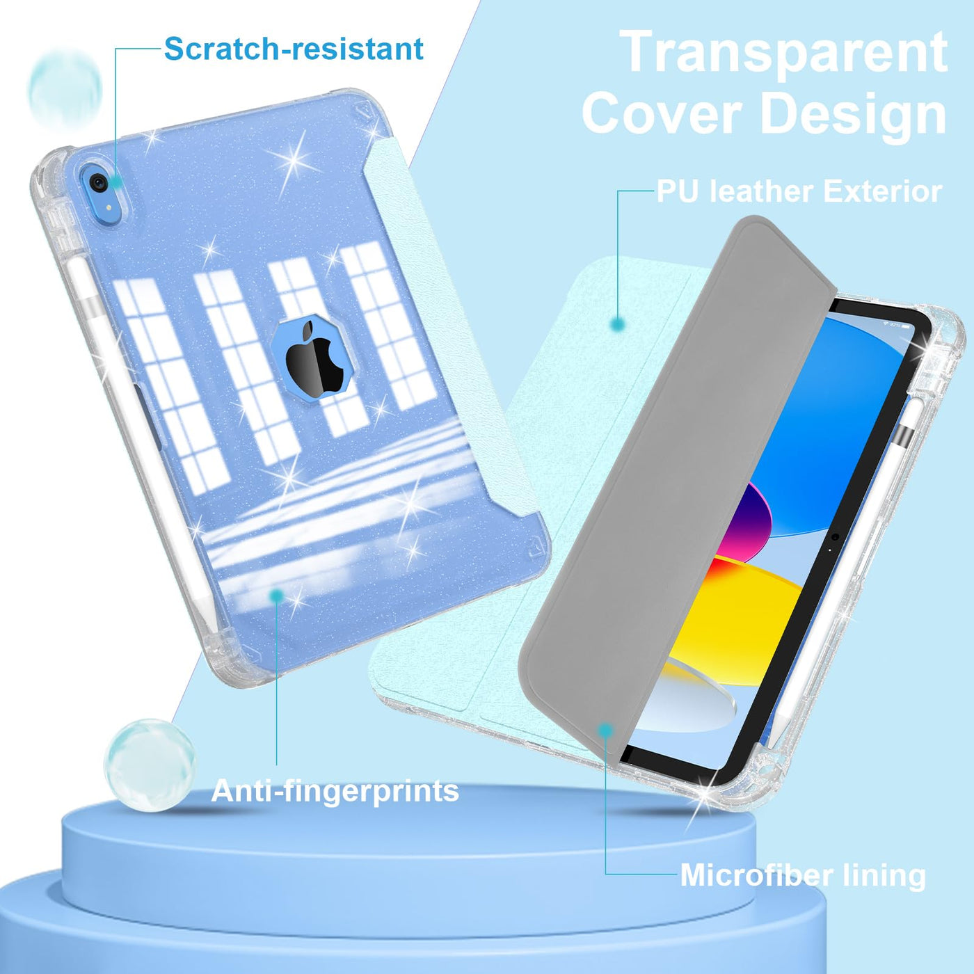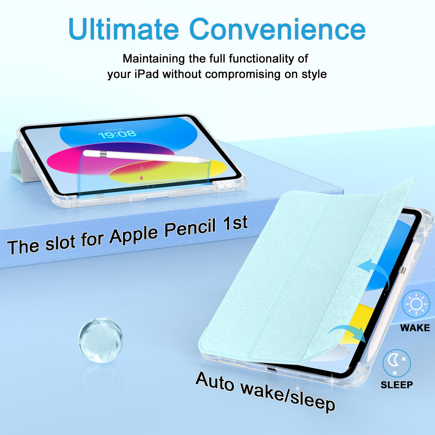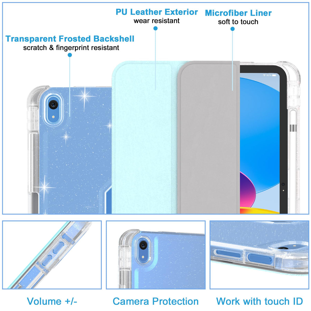Sevrok New Ipad 10Th Generation Case 2022 10.9-Inch With Pencil Holder, Sparkle Glitter Leather Cover [Support Touch Id And Auto Wake/Sleep] Lightweight Clear Rear Folio Case