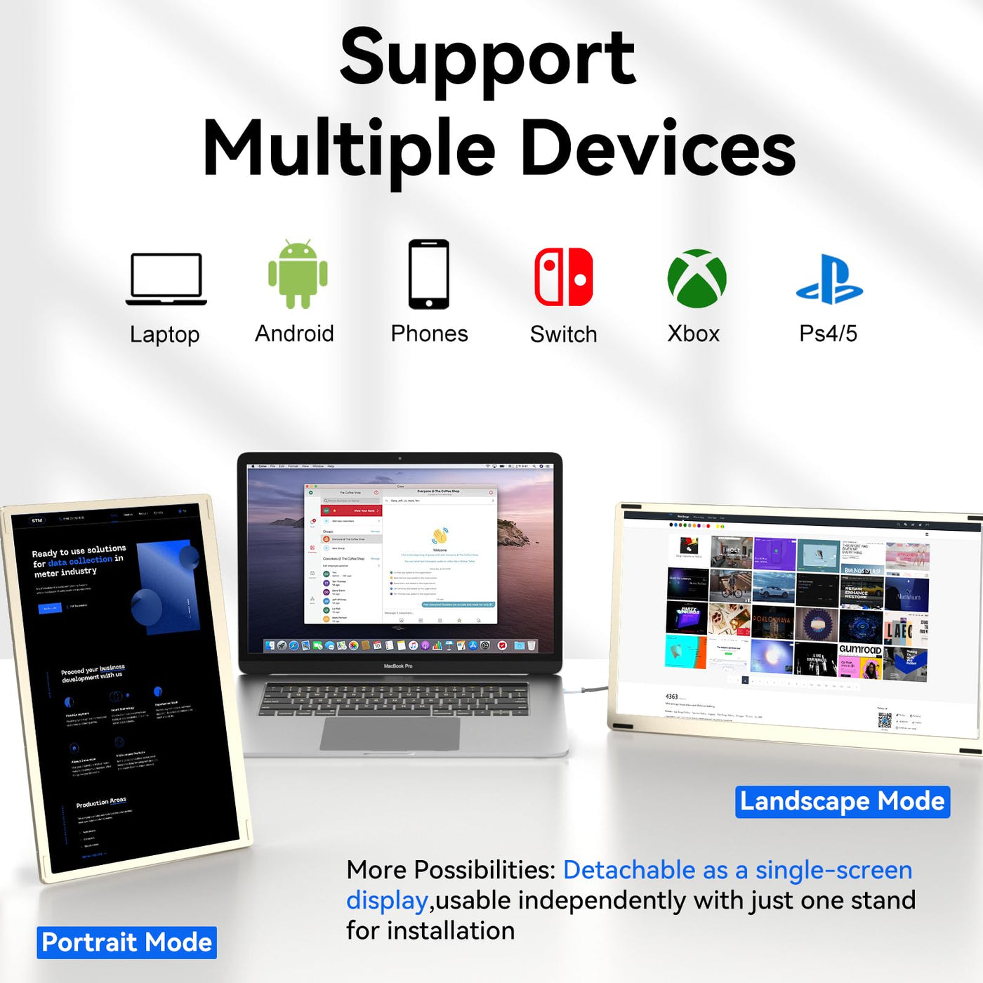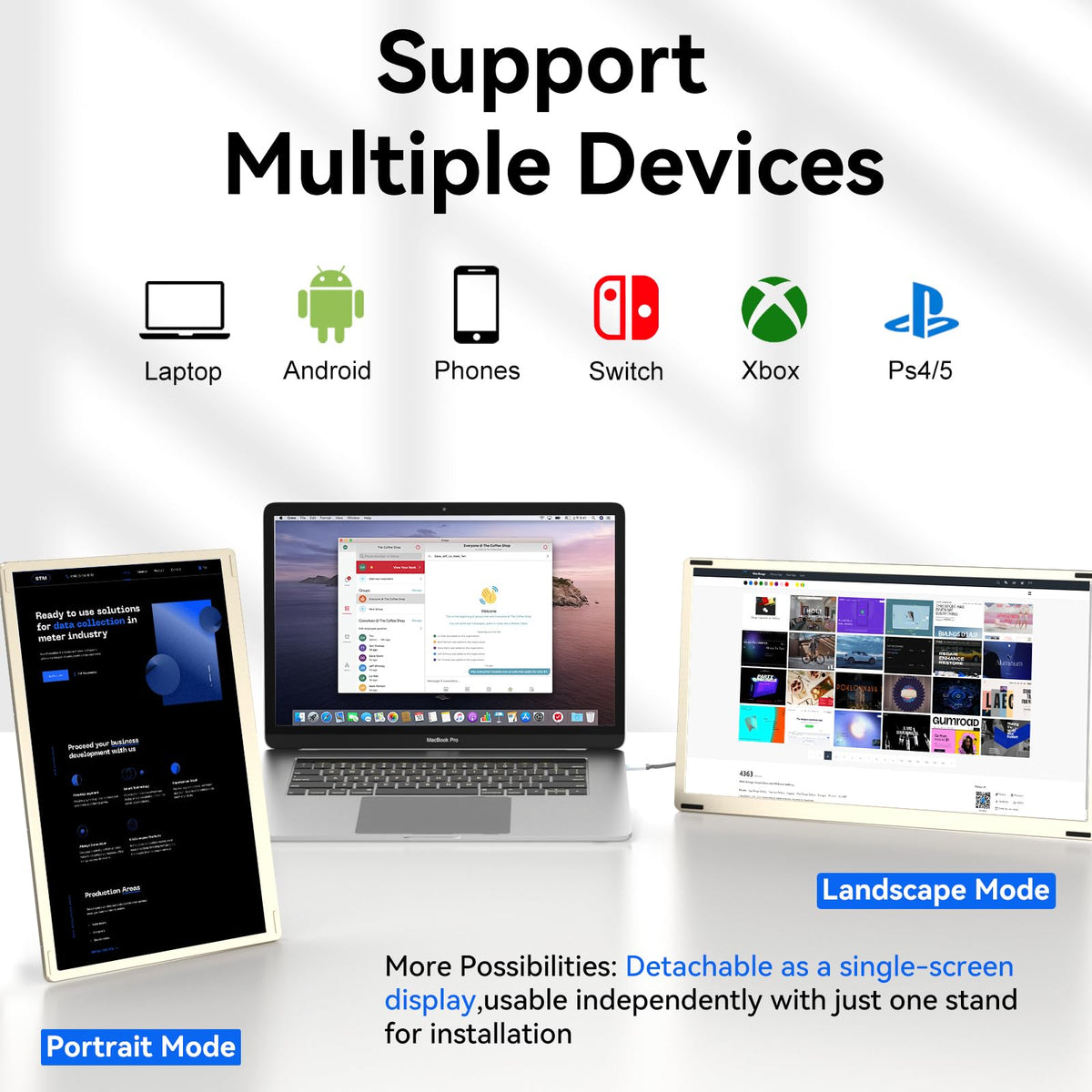 The Siaviala S6 Portable Monitor Extender Is Designed For Laptop And Other Devices, Including Android Phones, Tablets, Ps4, Xbox, Switch, And It Supports Many Operating System Such As Windows, Macos (Excludes M1/M2/M3 Chips),M1 Pro/Max, M2 Pro/Max, Chrome, Linxu, Android. Available For Meeting, Video Conference, Live Broadcast, App Development, Travels, Remote Job, Etc. Our Dual Screen Laptop Extender Breaks Traditional Display Limitations, Which Is Providing You A Seamless Vision, Will Bring You Visually Stunning Experience. Featuring Multiple Working Modes And Portable For Carrying,Wide Range Of Applications. Configured With Full Hd 1080P Ips Dual Screens, The Laptop Monitor Extension Brings You An Immersive Triple Screen Viewing Experience. You Can Start Various Works Simultaneously And Synchronize Your Content For Sharing. Furthermore, This Extended Screen Monitor Comes With Every Cable Needed,It Is Plug And Play, You Don'T Have To Download Any Software Nor Drivers.