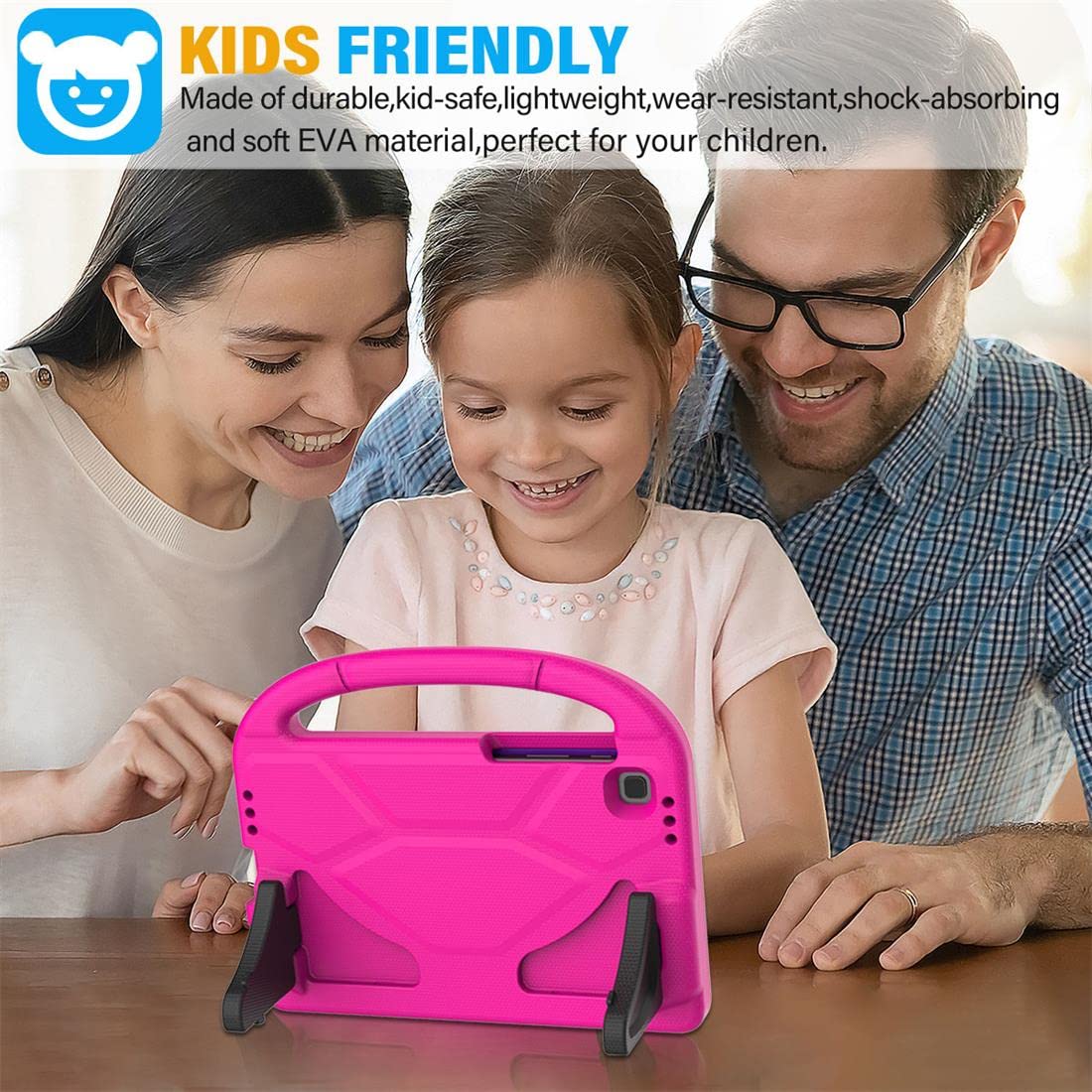 Q: What materials are used in the SUPLIK Kids Case for durability?A: The SUPLIK Kids Case is made from Ethylene Vinyl Acetate (EVA), which is known for its durability and shock-absorbing properties. This material helps protect your tablet from bumps and drops.