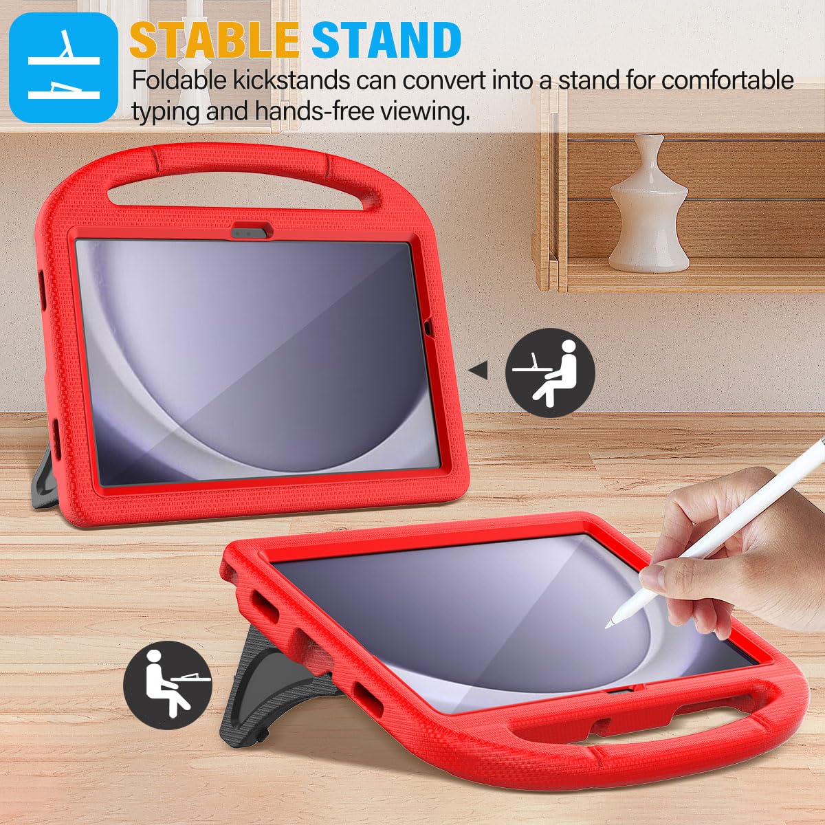 Q: Can the case be used for hands-free viewing?A: Absolutely! The SUPLIK Kids Case features a built-in foldable kickstand that allows for comfortable typing and hands-free viewing, making it perfect for watching videos or video calls.