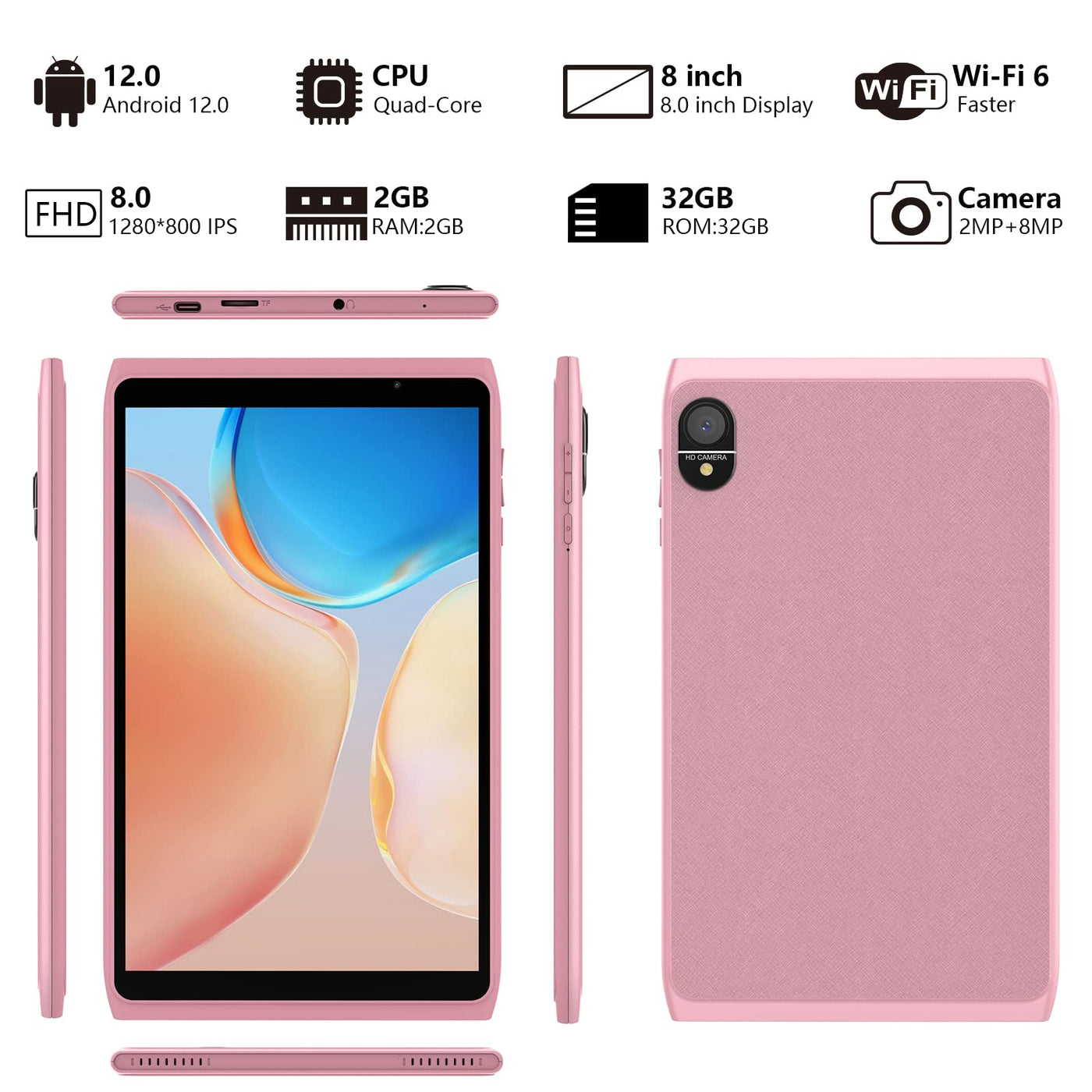 Performance Tablet New Android 12 System, Quad Core 1.5 Ghz Cpu. Faster Wifi 6. Bringing You A Smoother Experience. 8 Inch Ips Screen Tablet 8 Inch Ips Touch Screen 1280X800 Resolution Tablet With Eye Protection. Presents A Bright Display That Will Give You The Hd Experience Whether You Are Watching Videos, Reading E-Books, Or Playing Games. Clear Hd Camera Tablet Adopt Dual Camera, Front 2.0Mp, Back 8.0Mp. High Definition Pixels Ensure A Clear Experience, Whether It'S Taking Photos Or Video Calls. Fast Wifi 6 Tablet Tablet Support New Wifi 6 Mode. Long Lasting Tablets 4300Mah Large Capacity Batteries With Low-Power Cpu. No Matter Audio And Video Entertainment, Games And Learning, Office Meetings. Ensures More Than 8 Hours Mixed Use.