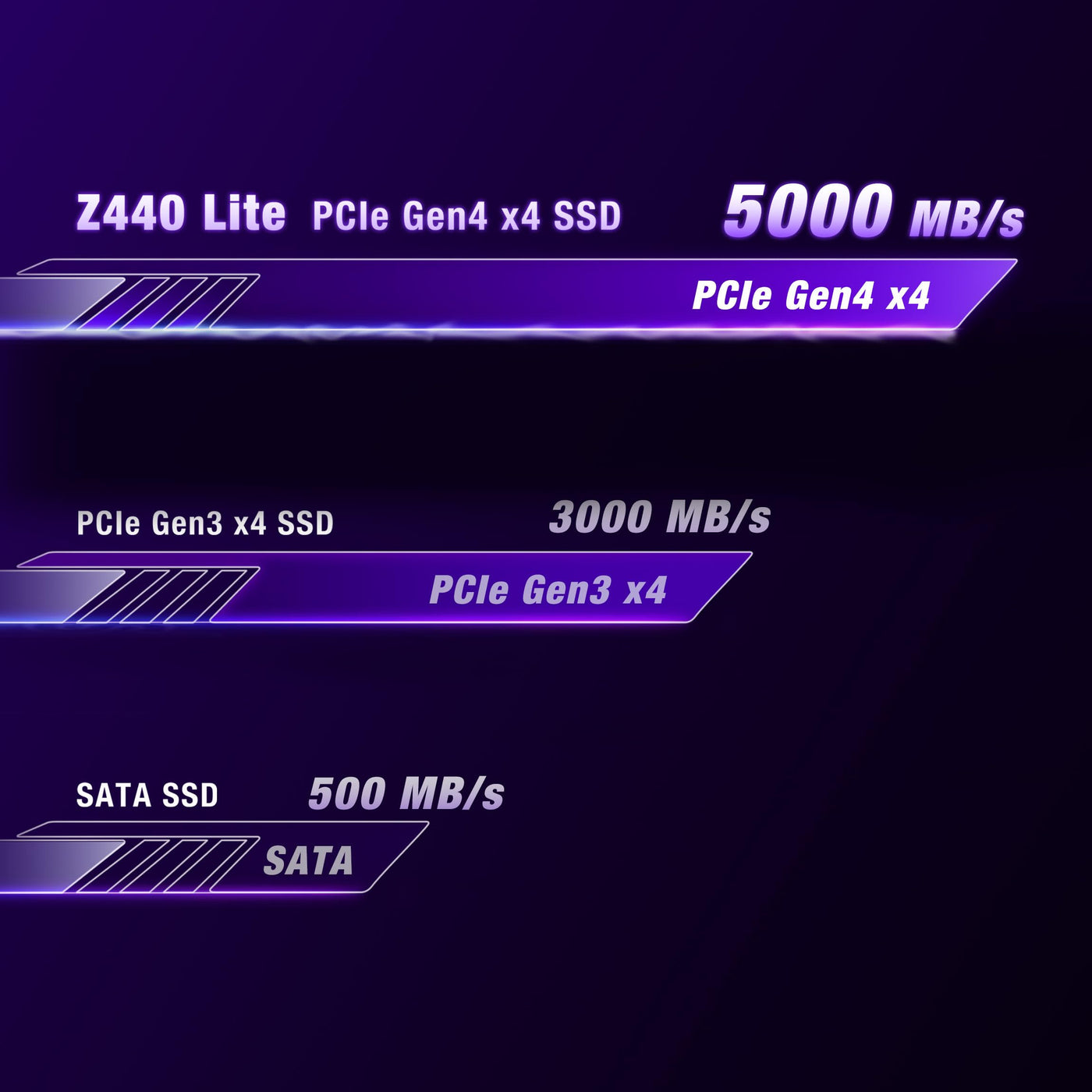 Q: What makes the TEAMGROUP T-Force Z440 Lite SSD a reliable choice for gamers?A: The TEAMGROUP T-Force Z440 Lite SSD is optimized for performance, utilizing the PHISON PS5021-E21T controller, which enhances reliability and ensures a long lifespan for your storage needs.