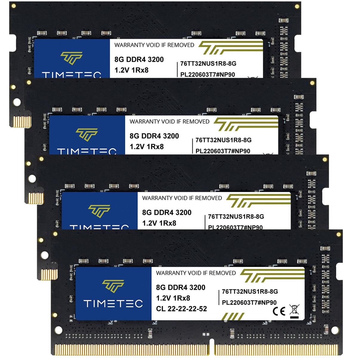 Timetec 32Gb Kit(4X8Gb) Ddr4 3200Mhz (Or 2933Mhz Or 2666Mhz) Pc4 25600 Non Ecc Unbuffered 1.2V Cl22 1Rx8 Single Rank 260 Pin Sod