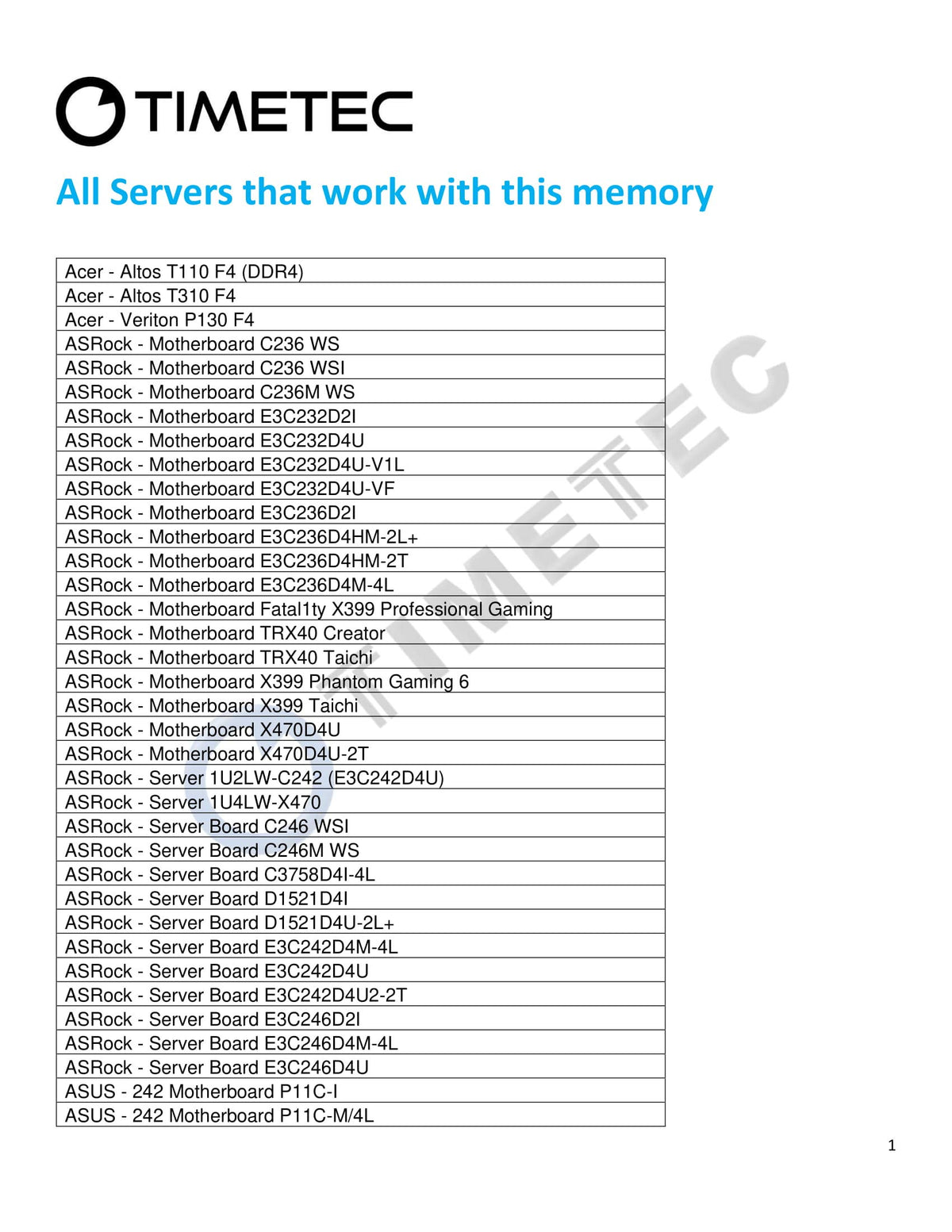 Timetec - Memory Of A Lifetimecompatible With (But Not Limited To):*Please Click Image For More Compatible Systems Modelneed To Know If This Part Is Compatible?Contact Us With Manufacturer And Model Information Of Your Motherboard