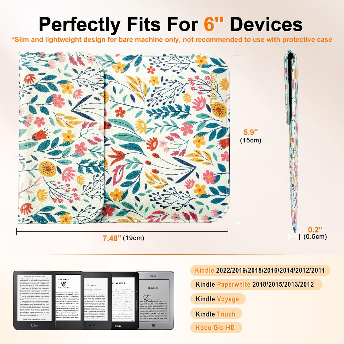 ??Compatibility - Specially Designed For Kindle Series E-Readers, This Protective Sleeve Is Compatible With All-New Kindle 2022, Kindle 2019, Kindle Paperwhite (2016 / 2015 / 2014 / 2013 / 2012), Kindle Paperwhite 10Th Gen 2018, Kindle Paperwhite 6.8 Inch (11Th Generation-2021), Kindle Voyage, Kindle(8Th Generation, 2016), Kindle Touch, Kindle 4/5, Kobo Glo Hd. Slim And Lightweight Design For Bare Machine Only, Not Recommended To Use With Protective Case. | ??High-Quality Material - Comfortable Pu Exterior Provides A Good Touch, Which Is Sturdy And Durable, Keeping Your Tablet From Dust, Drop, Bump, And Damage. Soft Microfiber Lining Protects Your Devices From Scratches. Simple And Stylish Style Gives Your Device A Nice Look. | ??Magnetic Closure - With Built In Magnet, It Can Be Quick Close And Open, Easy To Put In Or Take Out The Device. The Magnetic Design Also Hold Your Tablet Securely, By Which It Will Not Fall Out. | ??Slim & Lightweight - Its Slim Design Allows You To Easily Carry The Case By Hand And Slide It Into Your Backpack, Briefcase, Or Other Bags. It Is Easy To Carry It Wherever You Go. | ??Item Dimensions - External Dimensions: 7.48'' X 5.9'' X 0.2'' (19*15*0.5Cm). It Can Perfectly Fit Your Tablets.