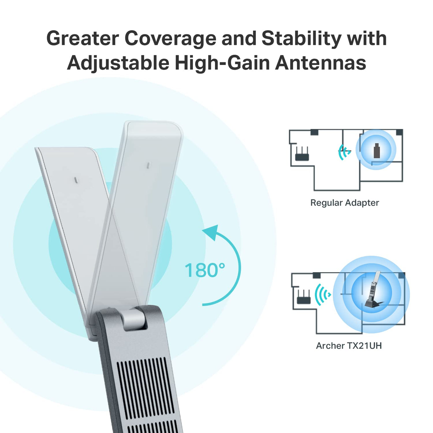 Tp-Link Ax1800 Wifi 6 Usb Adapter For Desktop Pc (Archer Tx21Uh) Wireless Network Adapter With 2.4Ghz, 5Ghz, Mu-Mimo, Ofdma, High Gain Dual Band 5Dbi Antenna, Wpa3, Supports Windows 11/10High Speed, Dual Band Wifithe Archer Tx21Uh Grants Your Pc Access To 802.11Ax Technology While Receiving Wifi Signals On Two Separate Bands, Boosting Speeds Up To 1.8 Gbps (Up To 574 Mbps On The 2.4Ghz Band And 1201 Mbps On The 5Ghz Band). Granting You Better Networking Experience For All Your Online Needs.Supported Systems: Windows 10, 11(32, 64 Bit)Please Use Usb 3.0 Port To Ensure Optimal Performance And Disable Your Devices Internal Wi-Fi First Before Installingindustry-Leading Supporttp-Link Offers 24/7 Technical Support And 2-Year Warranty For Most Home Products, 1 More Year Than Most Networking Brands.