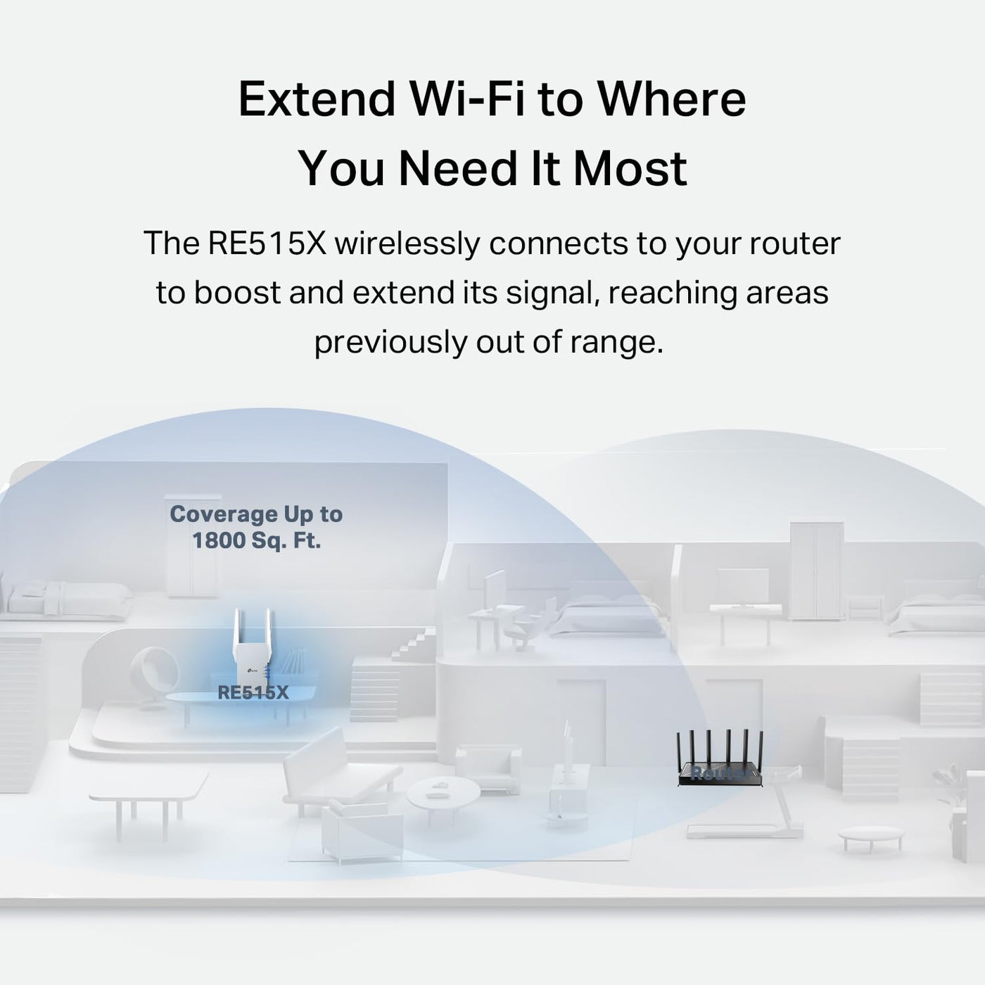Tp-Link Re515X Ax1500 Wifi 6 Range Extender W/Ethernet Port | 1.5G Dual-Band Wireless Repeater Amplifier | Up To 1800 Sq. Ft., 6