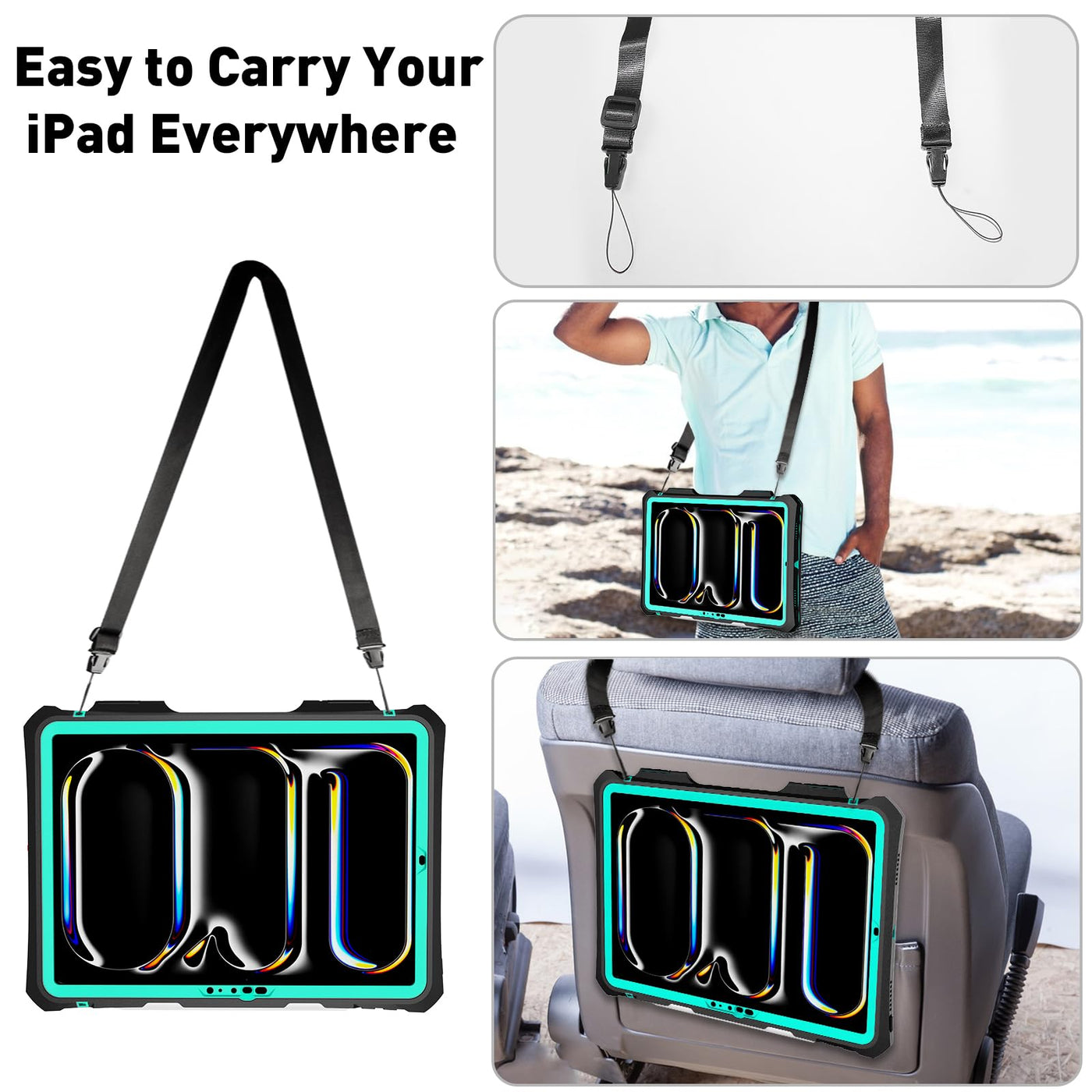 Q: How can I carry the iPad with this case comfortably?A: The Transy case is designed with an adjustable shoulder strap and a hand strap for easy carrying. The shoulder strap allows for hands-free transport, while the hand strap provides a secure grip, ensuring your iPad stays safely in your hands during use.