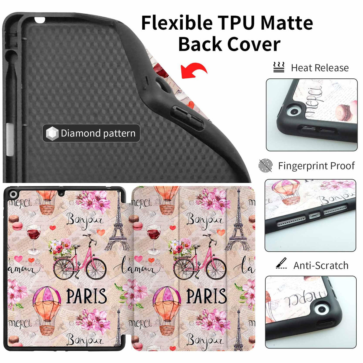 [Compatibility] This Protective Case Is Compatible With The 9Th Generation Ipad Released In 2021 (Models: A2602, A2604, A2603), The 8Th Generation Ipad Released In 2020 (Models: A2270, A2428, A2429, A2430), And The 7Th Generation Ipad Released In 2019 (Models: A2197, A2200, A2198). It Is Not Compatible With Any Other Ipad Devices. Please Check The Back Of Your Ipad To Find The Model Number. | [Comprehensive Protection] Crafted With Textured Pu Outer Layer, A Skin-Friendly And Smooth Ultra-Fine Fiber Fabric Lining, And A Tpu Back Cover. Provides Protection Against Impacts, Drops, And Scratches.High-Definition Printing Technology Ensures Clear Patterns That Are Resistant To Fading. | [Multi-Functionality] The Magnetic Smart Cover Supports Automatic Wake/Sleep Function.The Tri-Fold Front Cover, Combined With Strong Magnets, Can Reliably Provide Two Stable Standing Positions For Your Convenience. | [Built-In Pen Holder] Compatible With Apple Pencil Magnetic Attachment And Side Wireless Charging (Apple Pencil Not Included). | [Precision Design] Fitting Right The Pad. Accurate Cutouts And Design Enable Easy Access To All Ports, Cameras, Speakers, And Sensors.