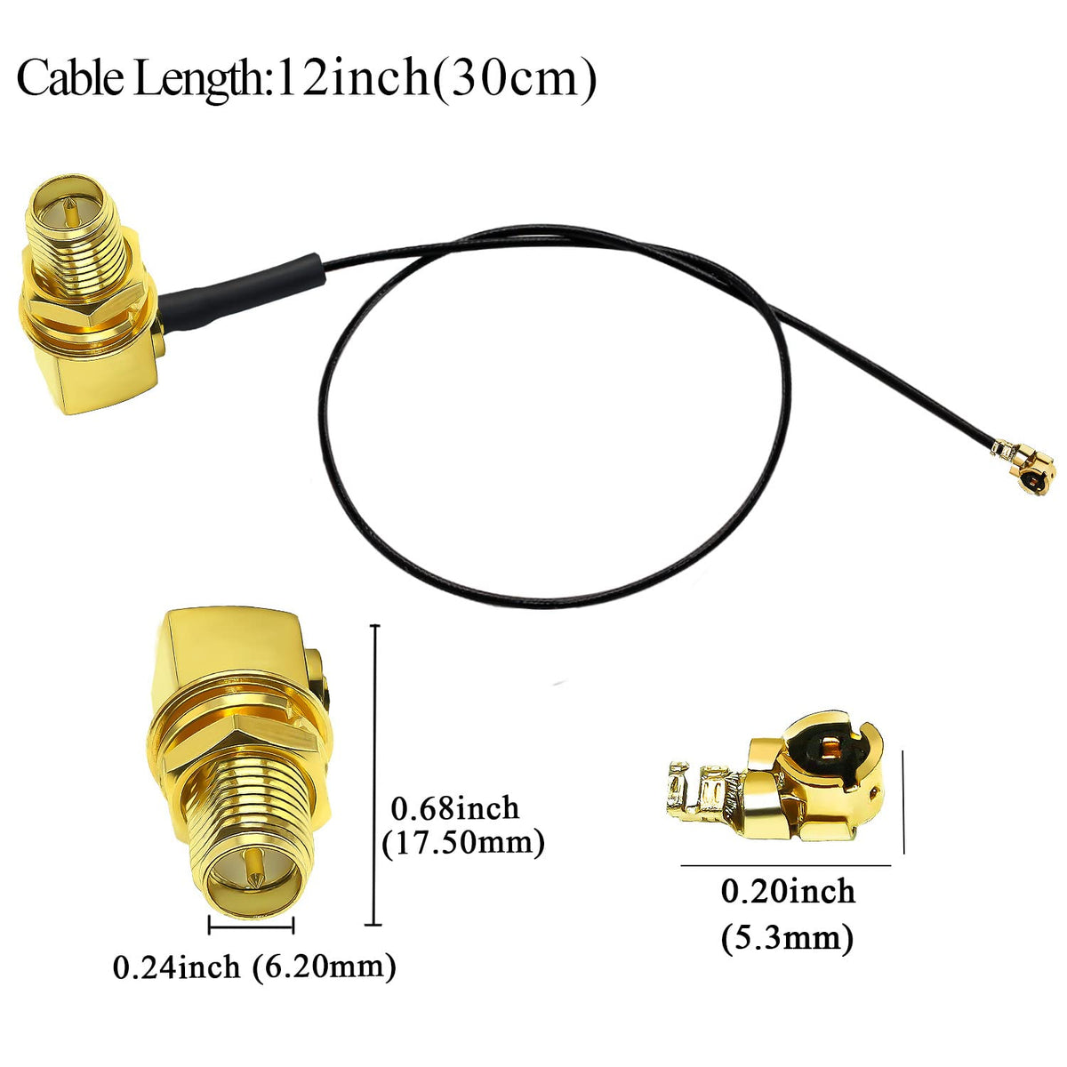 Specifications Of U.Fl Ipx To Rp-Sma Female Right Angle Extension Cable 5 Pack Of U.Fl Ipx To Rp-Sma Female Elbow Antenna Pigtail Cable 1: Rp-Sma Female Connector 2: 1.13Mm Ufl/U.Fl/Ipx/Ipex Connector Cable Type: 1.13Mm Mini Coaxial Cable Cable Length: 12 Inch (30Cm) Conductor Material: Pure Copper Frequency: Dc-6Ghz Impedance: 50 Ohm V.S.W.R.: = 1.3 Dielectric Withstanding Voltage: 200V Ac/1 Min Temperature Range: -40C To +80C Box? 5 Pack 12 Inch(30Cm) Rp-Sma Female Elbow To 1.13Mm Ipx/Ipex Coaxial Cable Connector 1: Rp-Sma Female Right Angle Connector Connector 2: Ipx/Ipex Connector Cable Type: 1.13Mm Mini Coaxial Cable Attention: Please Confirm Which Type Of Connector Your Device Is Needed Before Purchasing To Ensure You Got The Correct Cable. Our Service Continues Beyond The Sale: We Provide 1 Month Return Service And 12 Months Warranty After Your Purchase Date. If There Are Any Manufacturing Defects In This Product, Please Do Not Hesitate To Contact Us.&Nbsp; Do Buy With Confidence, We Have A Great Faith And Confidence For Our Product Materials And Quality, If You Have Any Question Related Your Purchase Directly From Our Store, Please Message Us Directly, We Will Deal With It As Soon As We Can Do. About Tuolnk: Tuolnk Produces And Offers Premium Quality Gold Plated Coaxial Connector Adapters And All Kinds Of Coaxial Cable To The World Of Our Customer. Tuolnk People Is Committed To Provide The Best Product And Competitive Offer To Each Of Our Customer.