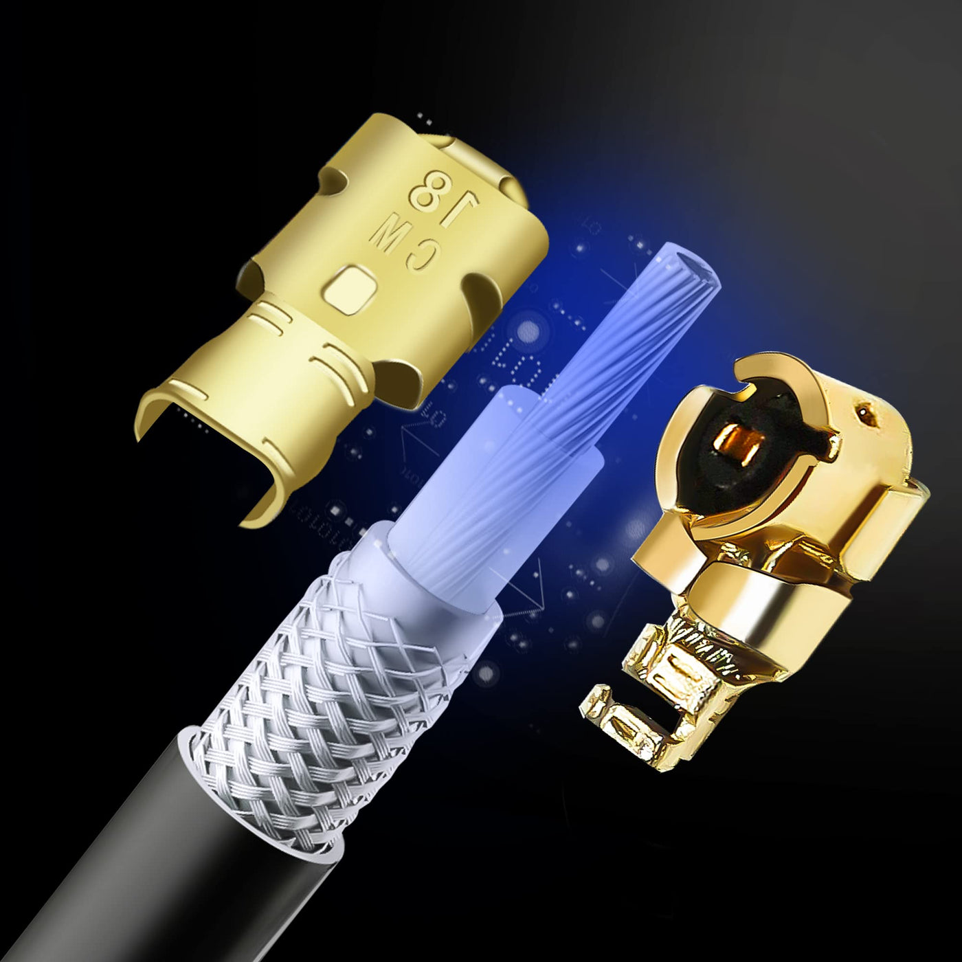 Q: What is the length of the TUOLNK extension cable and is it flexible?A: The TUOLNK extension cable measures 12 inches (30cm) in length and is designed with a 1.13mm mini coaxial cable, making it thin and flexible for use in tight spaces.