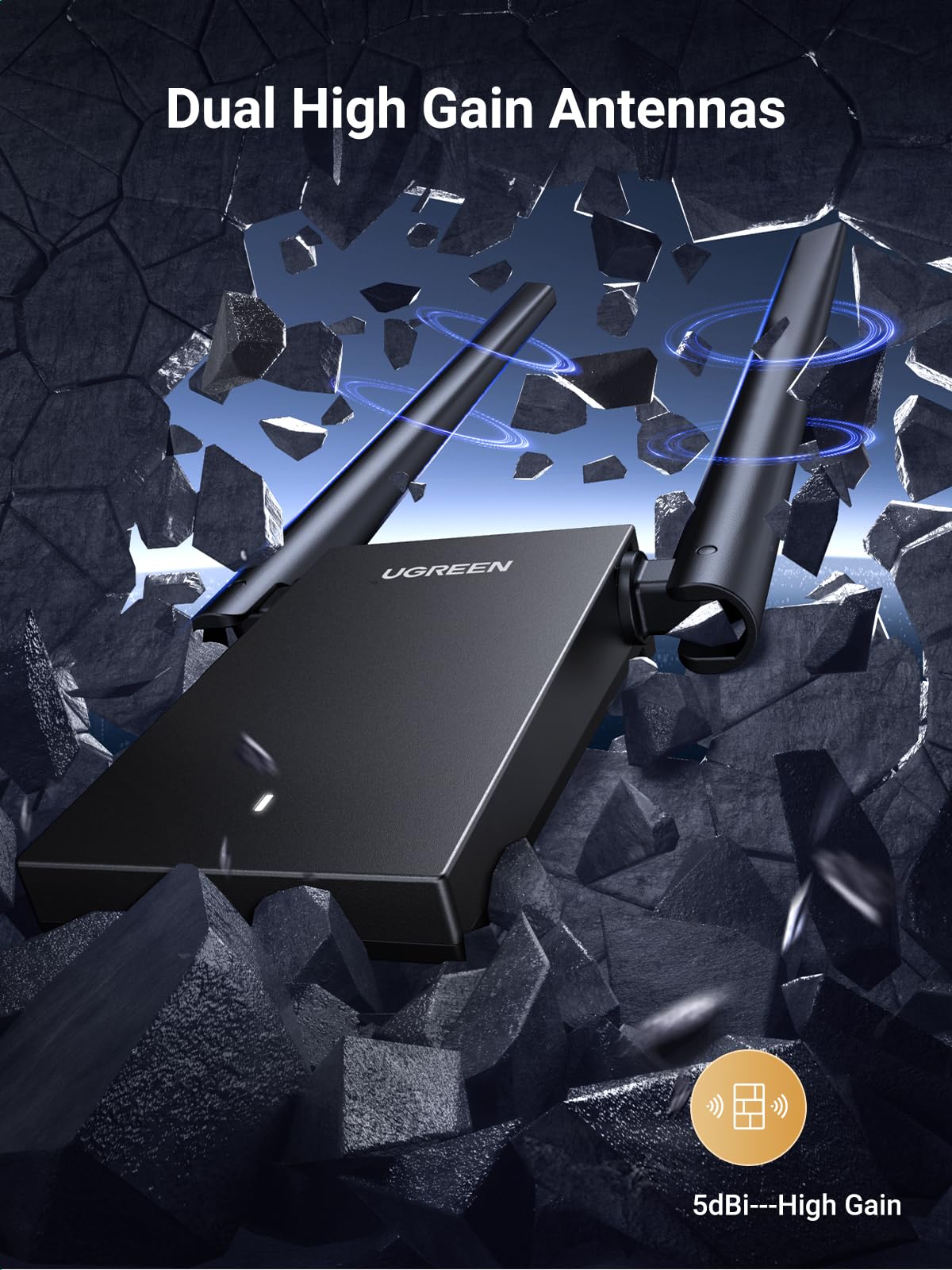 Ugreen Wifi Adapter For Desktop Pc, Ax1800 Usb Wifi 6 Adapter With Dual 5Dbi High Gain Antennas, 5G/2.4G Dual Band, Wap3 Sae, 3F