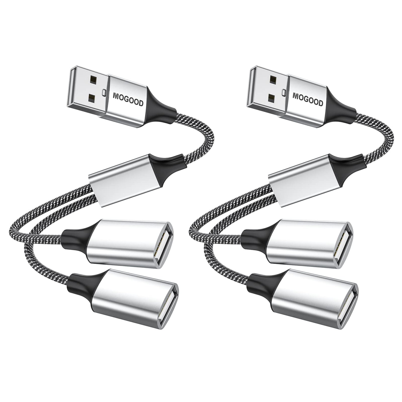 Q: Is the MOGOOD USB Splitter Cable durable?A: Yes, this USB splitter is designed for durability with a sleek aluminum shell and a nylon braided jacket, ensuring it can withstand daily wear and tear.